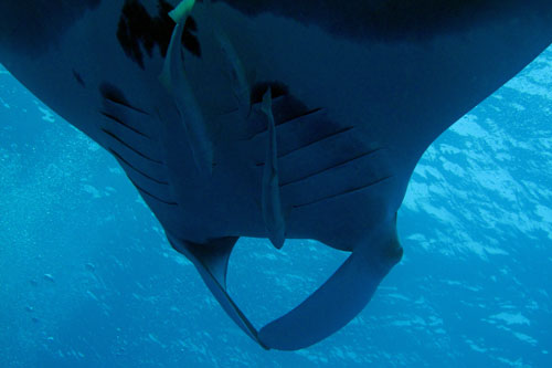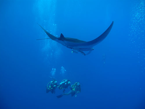 Era la seconda immersione del mattino a Small Gotha, una fra le più belle e colorate pareti di Saint John… scesi in profondità, io e la mia compagna seguiamo subito Hamam dirigersi verso il blu. Lo conosciamo ormai, ha sentito qualcosa… presto la sensazione è confermata, una macchia sempre più grande, più nitida, eccola apparire in tutta la sua bellezza! Cerchiamo in tutti i modi di richiamare gli altri membri del gruppo, persi ad osservare il prosperare di gorgonie e ventagli, e poi torniamo a contemplare la fantastica manta che “vola” sopra di noi, con due ali imponenti, come fosse sospesa in mezzo al mare. Ci giriamo e voliamo con lei, danziamo con questa meravigliosa ballerina che sale sempre di più, i nostri computer suonano per la risalita ma è impensabile lasciarla andare… E’ troppo bella per non ammirarla mentre passa e ripassa, compiendo degli spettacolari loop.