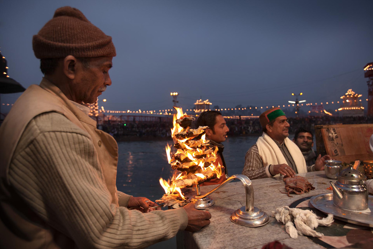 Si tratta di un rituale indù dedicato alla Dea Madre Ganga, la Dea del più sacro fiume indiano.