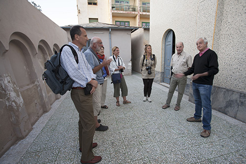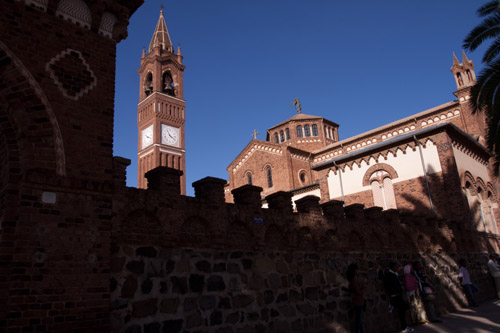 Ho deciso la destinazione del mio viaggio all’ultimo momento. Un attimo, una breve esitazione e son partita. Mi sono aggregata a un piccolo gruppo. Il tempo di strappare il visto d’ingresso e partire. Senza conoscere bene il programma, ancor meno di trovar tempo per documentarmi meglio prima di partire, come solitamente amo fare. Attratta dalla prospettiva di fare un workshop fotografico, sono felicissima di aver partecipato a questo piccolo miracolo: un’avventura che, per me, e mi pare pure per gli altri, si è rilevata molto più affascinante del previsto. Un pomeriggio… girovagando per il centro, completamente rapiti dalla smania fotografica, voltiamo in una stradina laterale ad Harnet Avenue e notiamo un po’ defilata, quasi nascosta, una piccola Sinagoga. Solitaria, fiera. Il sole comincia a calare, il cielo è tinto d’indaco, come sempre, nei giorni fin lì trascorsi ad Asmara, la luce perfetta per le fotografie. Continuo a scattare e comincio a fotografare questo gioiellino architettonico, piccolo, ma non per questo meno interessante rispetto ai grandi luoghi di culto delle vicinanze. La cattedrale copta di N’da Mariam che domina il centro città dall’alto della collina, la grande moschea di Kulafah Al Rashidin e la cattedrale cattolica, in pure stile lombardo, dedicata alla Madonna del Rosario nella centralissima Harnet Avenue, che molti anziani Asmarini si ostinano ancora a chiamare con il vecchio nome italiano ‘Viale delle Palme’. Preferisco il vecchio nome, fa un po’ sognare, ed è effettivamente un meraviglioso viale costeggiato da palme e da larghi marciapiedi, perfetti per il passeggio ozioso.