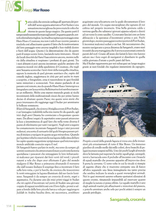 Un viaggio alla scoperta delle meraviglie del Mar Rosso sudanese, esplorato in tempi pionieristici dal mitico Cousteau, che lo considerava ....