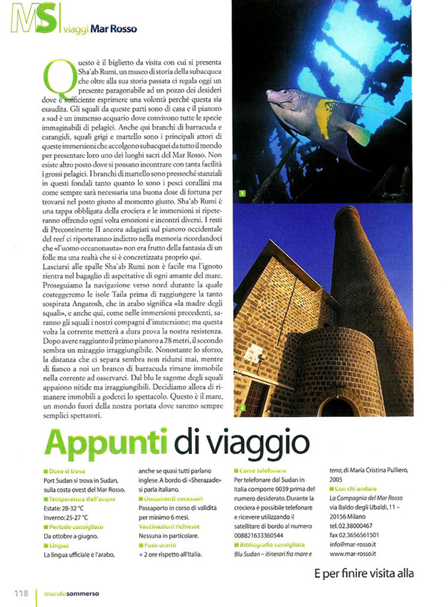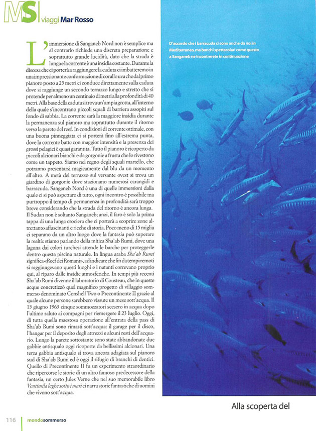 cronaca di un viaggio in uno degli angoli più famosi del Mar Rosso Sudanese, fra i resti del villaggio sommerso del comandante Cousteau ....