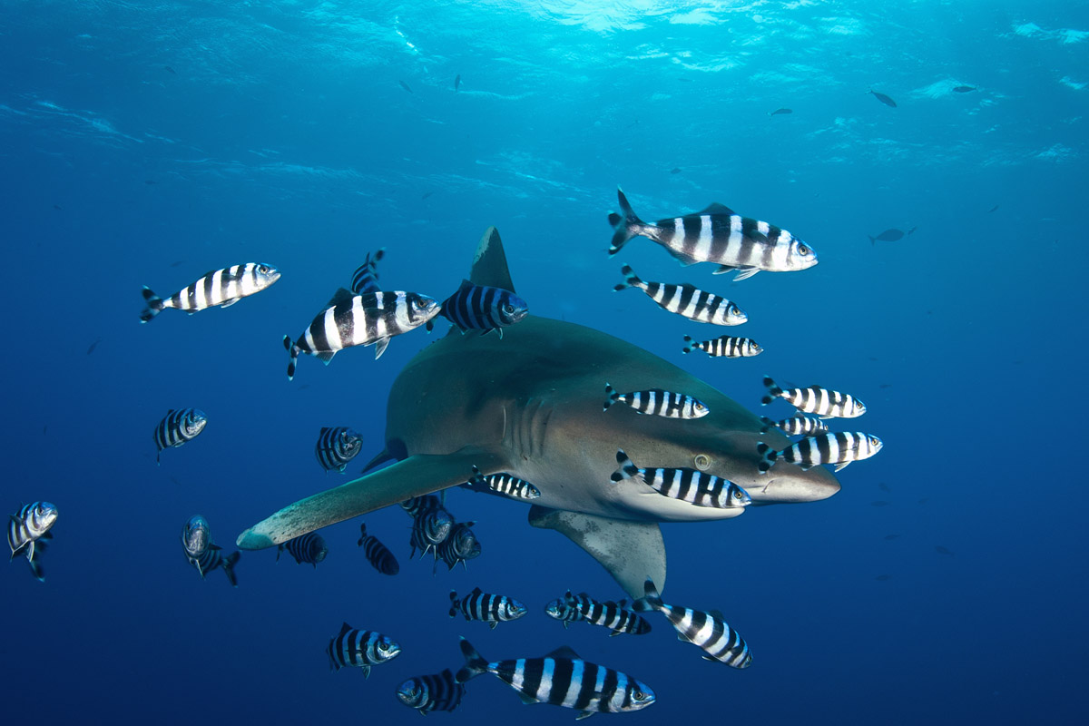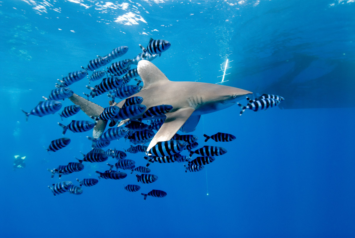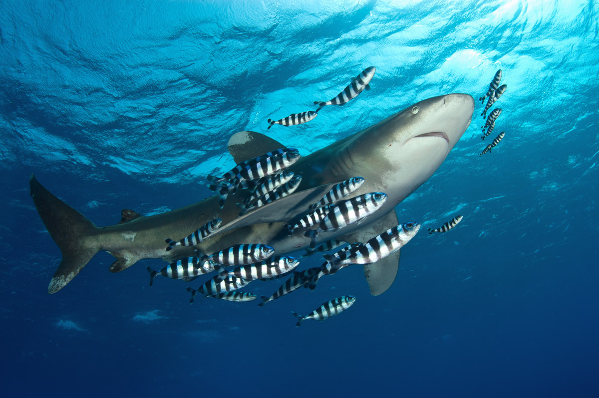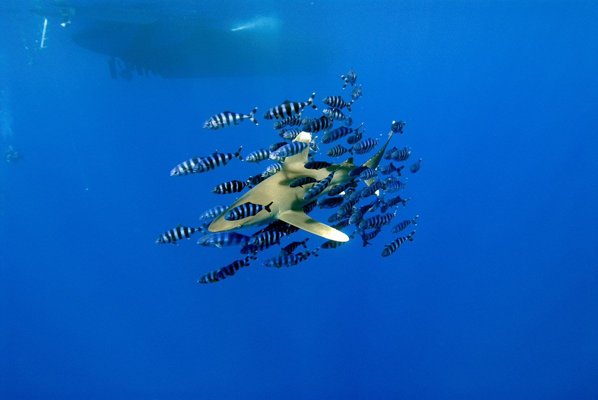 Quando si parla di squali bisogna essere seri ma solo per rispetto verso questi animali! Da evitate qualsiasi atteggiamento da super subacqueo ma al contrario impariamo ad apprezzarli per le creature magnifiche e delicate che sono e non per quella vena di superomismo col quale spesso il subacqueo ama raccontarsi. Essendo un cercatore di mare aperto, il Carcharhinus longimanus manifesta un atteggiamento particolarmente intraprendente e sarà lui ad avvicinarsi per curiosare. Non allontanatevi troppo dal reef, in modo che avendo il longimano di fronte e il reef alle spalle, a voi venga meno la preoccupazione di non sapere dove si trova l'animale. Godetevi un incontro che purtroppo a causa nostra rischia di diventare sempre più raro. Negli ultimi anni alcuni reef del Mar Rosso hanno subìto il curioso fenomeno di una eccessiva concentrazione di questi meravigliosi esemplari che con il tempo si sono abituati alla presenza del subacqueo fino al punto di diventare eccessivamente amichevoli e curiosi. Da parte sua il subacqueo ne ha approfittato convincendosi che questo atteggiamento fosse un dato di fatto e che tutto sommato il Carcharhinus longimanus è veramente innocuo. Purtroppo non è così infatti, questo squalo rimane sempre potenzialmente pericoloso il momento in cui viene stimolato. Non dimentichiamoci mai che noi siamo soltanto degli uomini immersi in un ambiente che non è il nostro e di fronte a noi avremo uno squalo bello, simpatico, tranquillo e curioso ma pur sempre un animale con tutte le caratteristiche del predatore. E' assolutamente sconsigliato immergersi in apnea in luoghi dove è possibile imbattersi in questa specie di squalo. I movimenti di un apneista possono indurre il pesce a scambiarvi con una potenziale preda in difficoltà. Chiarito questo concetto potremo godere di una delle maggiori emozioni che si possono provare sott'acqua.