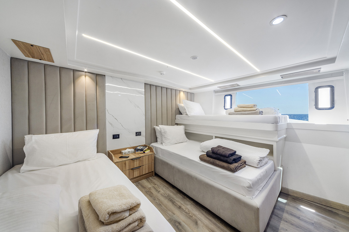 Ponte superiore 4 cabine con letti affiancati