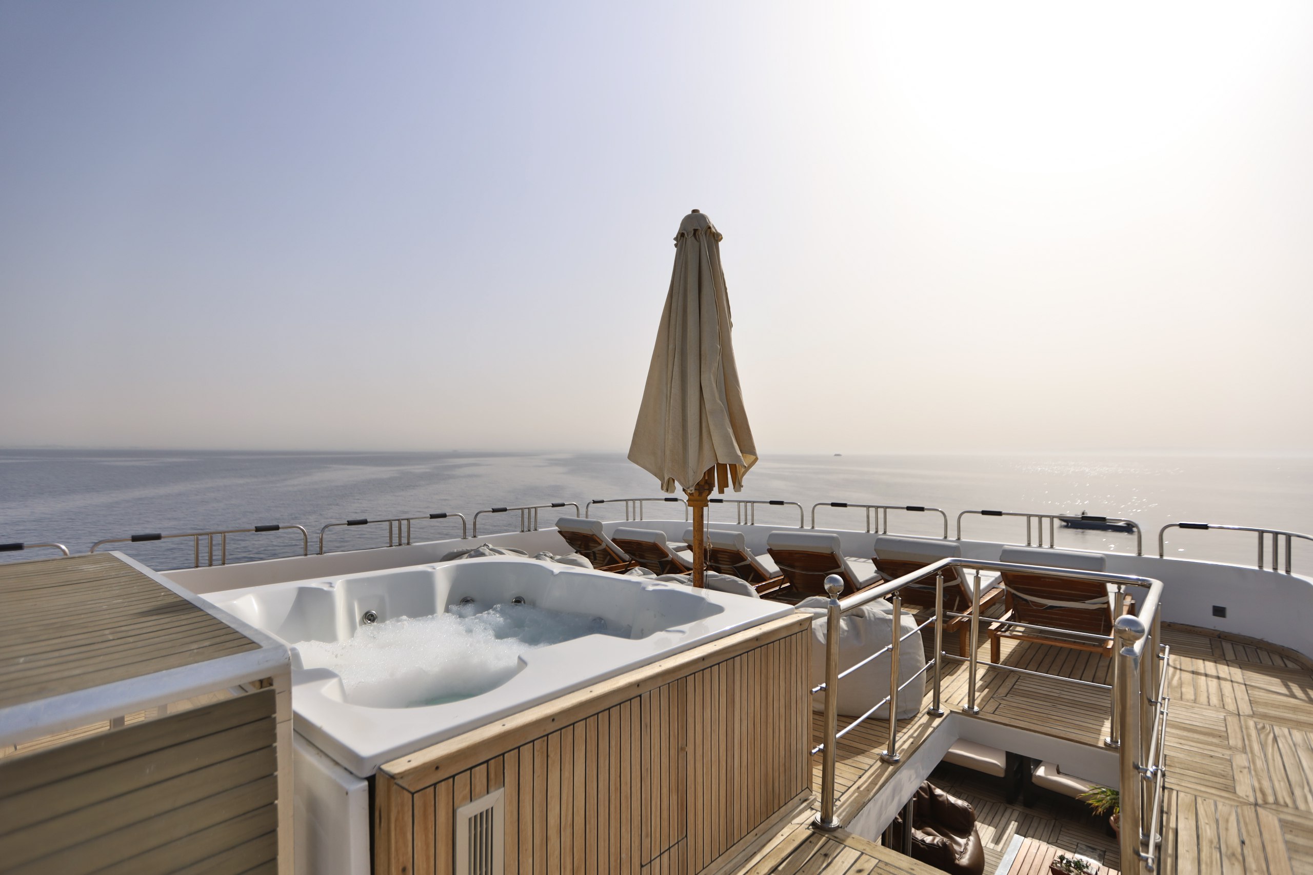 Sun Deck ponte soleggiato con sedute e cuscineria, Jacuzzi