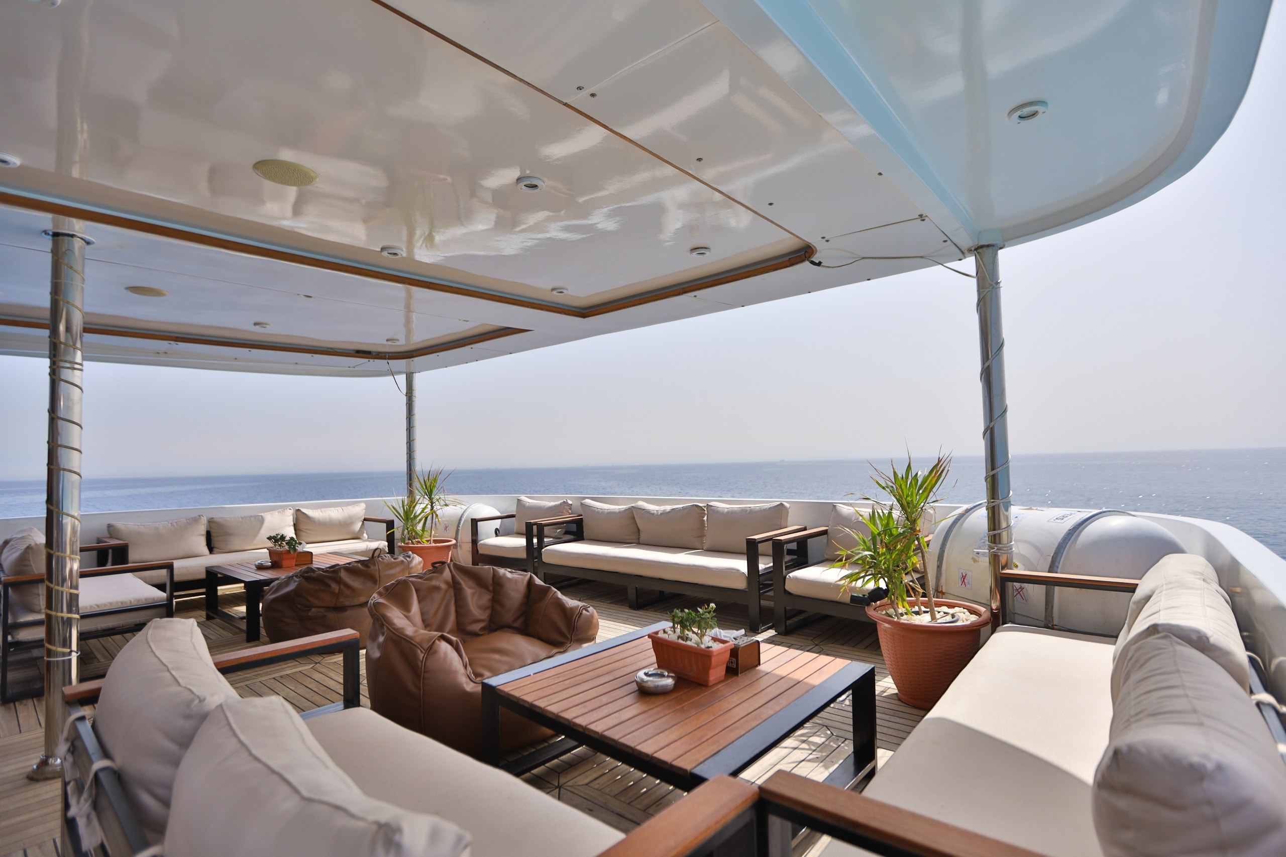 First Deck ponte ombreggiato zona relax con sedute. Bar esterno