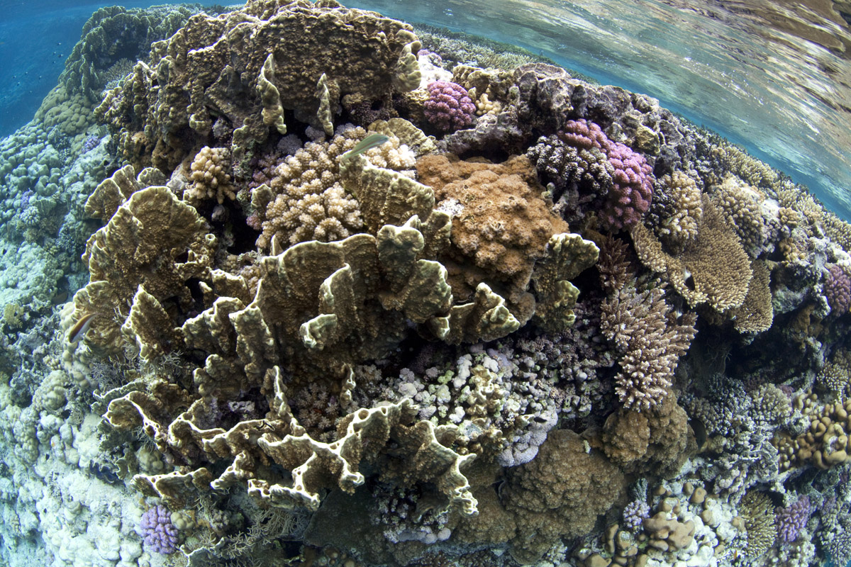 La barriera corallina ci offre una splendida varietà di colori e forme che potranno essere un ottimo soggetto se ben rappresentato, oppure un pessimo soggetto se rappresentato senza una adeguata scelta compositiva. Iniziamo immaginando la nostra barriera corallina alla stessa stregua di un set fotografico al quale dovremo inserire i soggetti che serviranno a comporre l'immagine finale. Il nostro set sarà quindi la superficie della barriera corallina ovvero quella parte di barriera posta pochi centimetri sotto l'acqua che ci offrirà l'opportunità di sfruttare la luce proveniente dall'esterno e quindi non avere bisogno di luce flash. Inoltre se il mare sarà piatto e non mosso, un altro elemento da aggiungere alla nostra immagine saranno i riflessi colorati della barriera che si specchia sull'acqua. Già abbiamo individuato alcuni elementi fondamentali per realizzare belle immagini poco banali: barriera superficiale, luce esterna, acqua calma e riflessi. A questo punto diventa necessario individuare quella zona di barriera sulla quale i coralli formano una composizione ben bilanciata che riteniamo adeguata per essere il centro di attenzione della nostra immagine. Sicuramente avremo a disposizione sufficienti elementi per rendere la nostra immagine ricca di informazioni; sarà soltanto il nostro gusto compositivo a generare lo scatto finale. Per chi dispone di fotocamera in custodia e di un obiettivo grandangolare lo stimolo sarà ancora maggiore dato che potrete divertirvi con composizioni molto interessanti. Queste immagini si potranno realizzare al termine dell'immersione, quando sarete in superficie prima di risalire sul gommone e avrete ancora qualche minuto da dedicare agli ultimi scatti. Ancora meglio e senza l'ingombro delle bombole, potete fotografare tra un immersione e l'altra. Avvicinatevi alla barriera corallina e cominciate a fotografare in assoluta calma. Se poi volete proprio esagerare, provate a scattare quando il sole inizia a tramontare, i giochi di luce e i riflessi colorati saranno una vera magia.