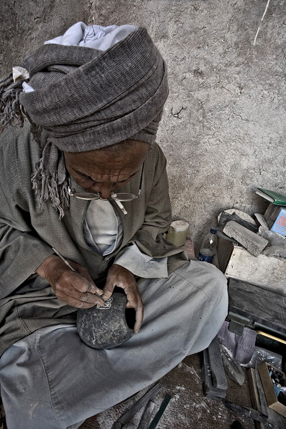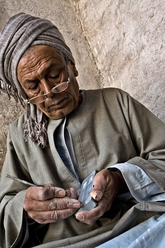Ci addentriamo in un mondo parallelo, dove il silenzio è interrotto dal battito ritmato di strumenti primordiali. Tra queste strade polverose vivono gli "artisti del falso", meravigliosi riproduttori di monili dell'era faraonica. Artisti immensi nella loro semplicità ma straordinari cesellatori della opulenta arte egizia.