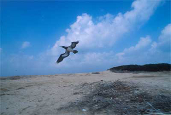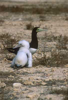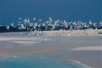 fitta vegetazione bassa, rifugio per le sule e i loro nidi, la sabbia corallina
