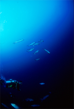 mostrandoci il fianco poi sparisce sprofondando nel blu.