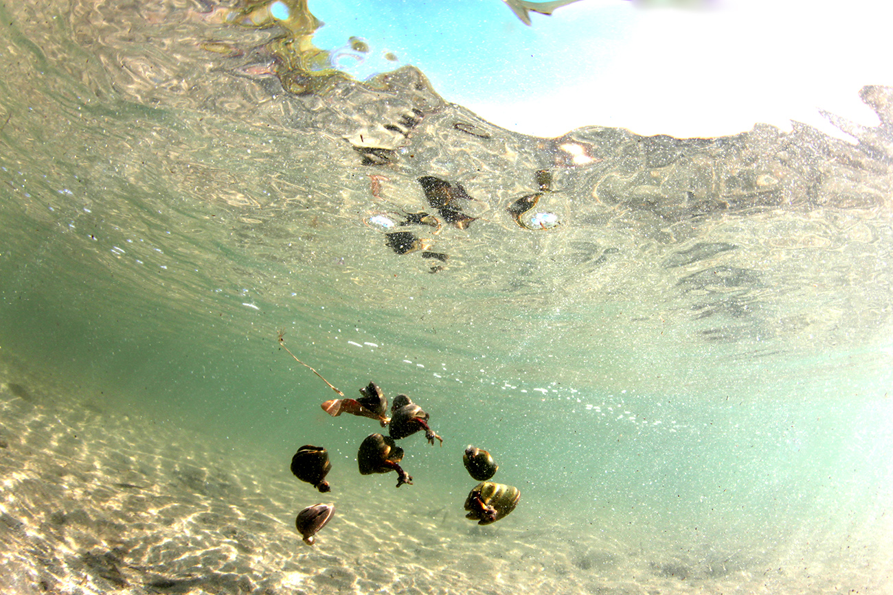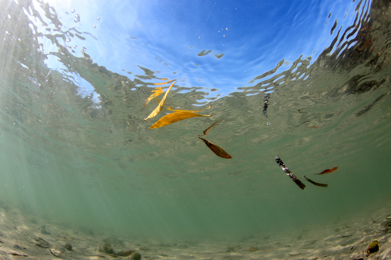 Un seme galleggia confuso tra foglie e arbusti. Presto attecchirà sul fondale paludoso e poi sboccerà per presentare alla luce la sua minuscola pianta.