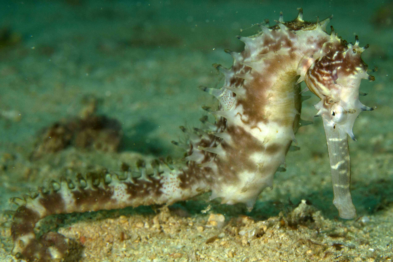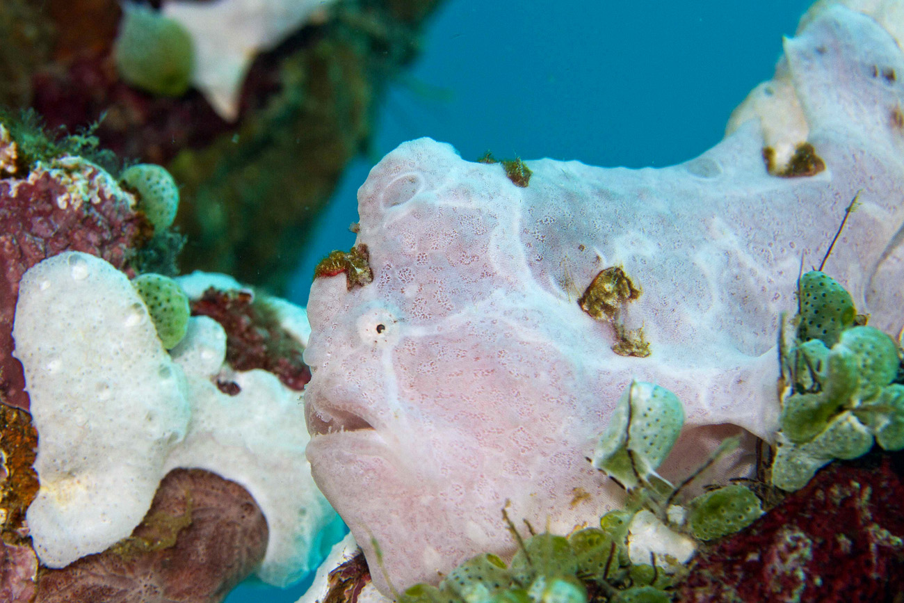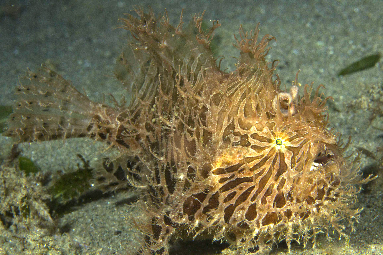 Il computer dice che siamo a soli 4 metri di profondità, e a questa profondità sono certo che non si soffre di narcosi d'azoto, quindi quello che si presenta davanti ai nostri occhi non è un sogno: centinaia di crostacei che ci osservano, cavallucci marini che fanno capolino tra ciuffi di fanerogame, aplisie seppioline nudibranchi e gasteropodi che solcano quella sabbia in cerca di cibo, e persino un "Hairy Frogfish" che se ne va a spasso quasi a fingersi un ciffo di alghe nella speranza che qualche piccola preda cada nella sua trappola di perfetto mimo.