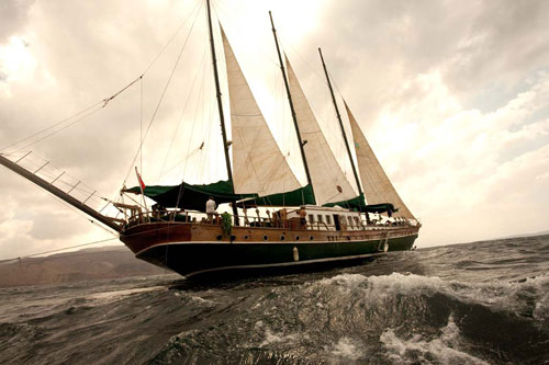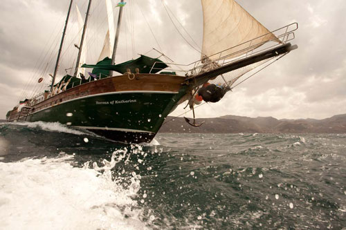 Quasi un giorno di viaggio, qualche ora per ambientarsi sul Boreas of Katharina, la nostra casa galleggiante per una settimana, e poi il giorno seguente ci si sveglia più ad occidente, quasi entrando nel continente africano. Saliti sul ponte, ancora assonnati e vogliosi di una buona colazione, ci avvediamo che siamo soli, ancorati in un piccolo ridosso della costa.