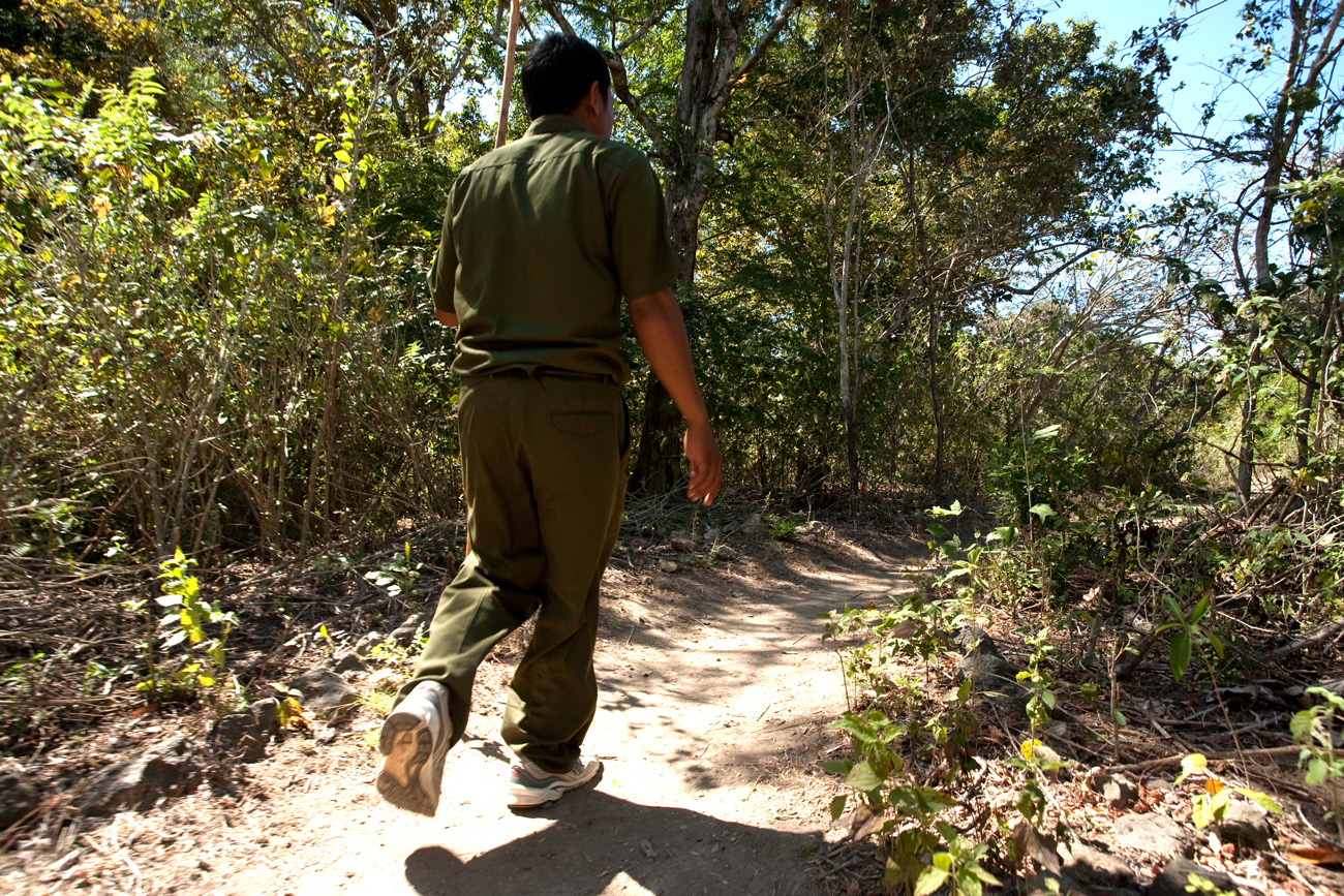 Il ranger cammina davanti a me con passo deciso ed occhi ben aperti, nella speranza di imbattersi nell'animale senza mai separarsi dal suo fido bastone, necessario per tenere a distanza di sicurezza il famigerato varano.