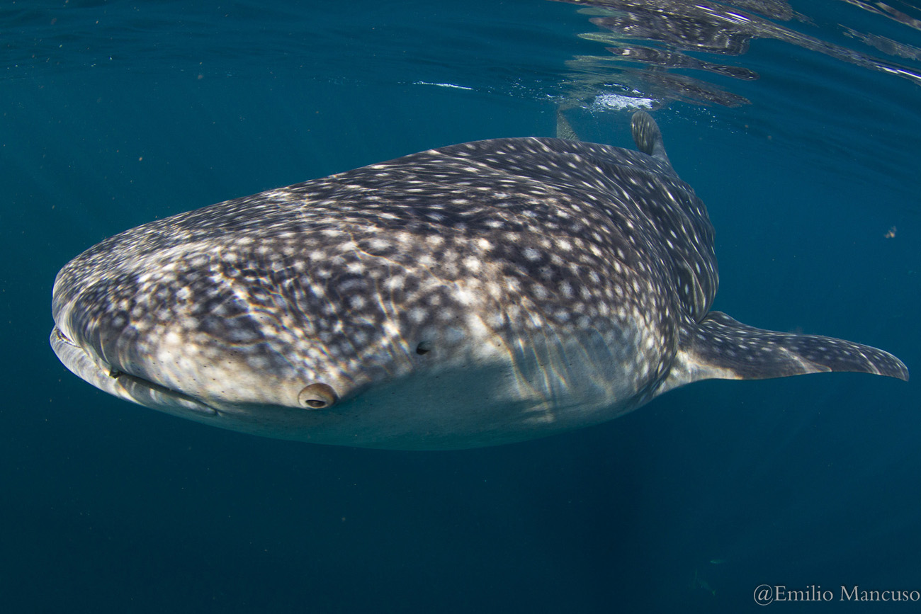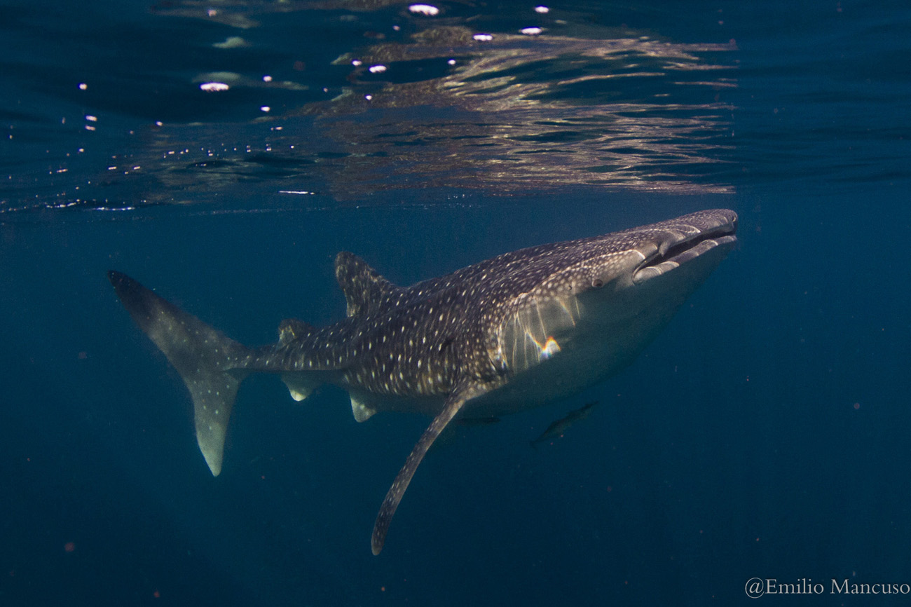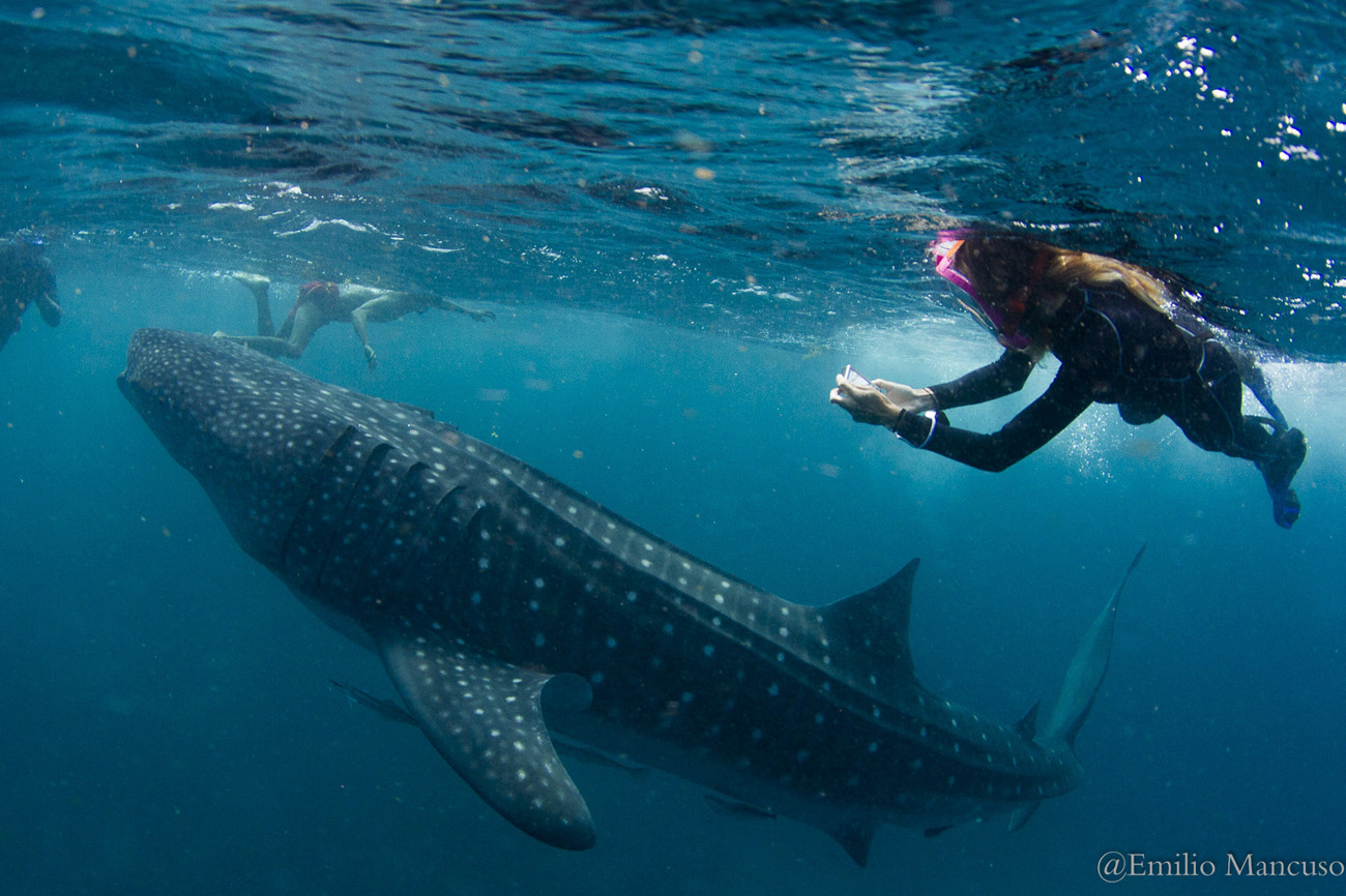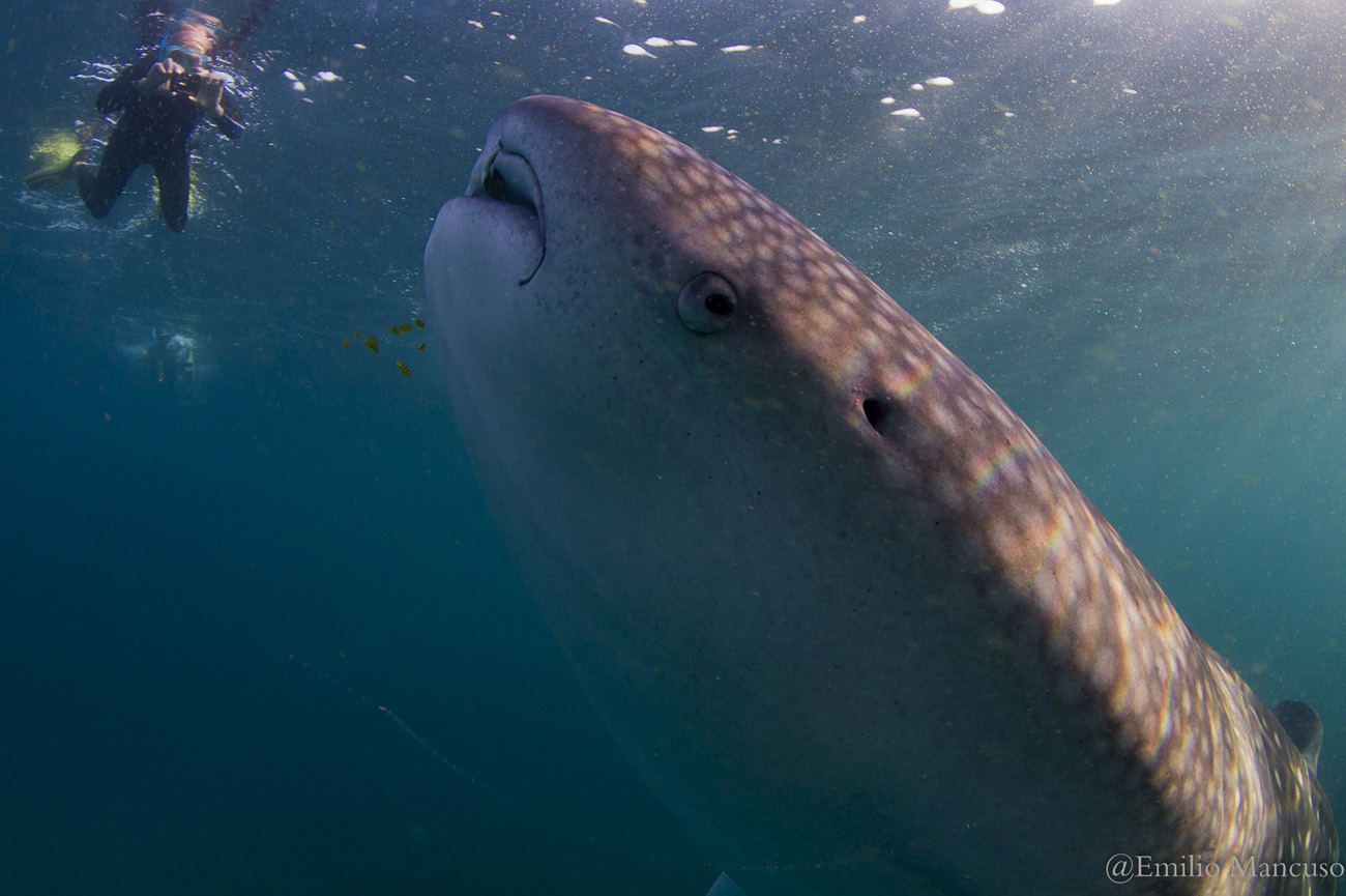 Vederlo nuotare elegante e sicuro, fa capire quanto l'evoluzione sia stata perfetta e come non contino il suo peso e lunghezza, ma l'essere a proprio agio nell'elemento l’acqua dove ogni movimento è pura Poesia. Lo guardiamo nuotare mentre annaspiamo un po’, anzi, come disperati, perché le nostre gambe sono nulla rispetto alla sua enorme pinna caudale. Nonostante la fatica inizi a farsi sentire, ringrazi quella curiosità e voglia di scoprire che ti ha portato fino a qui, fino a quell'istante in cui lui ti concede una tregua, rallenta, si fa guardare, forse ti guarda, e ti regala un momento a contatto ravvicinato, lui che è il re dei mari: lo squalo balena.