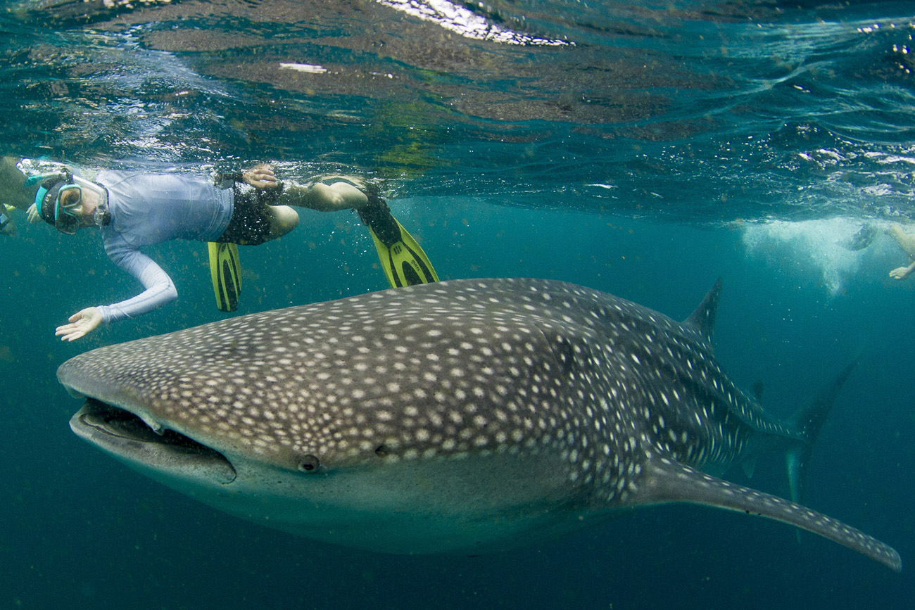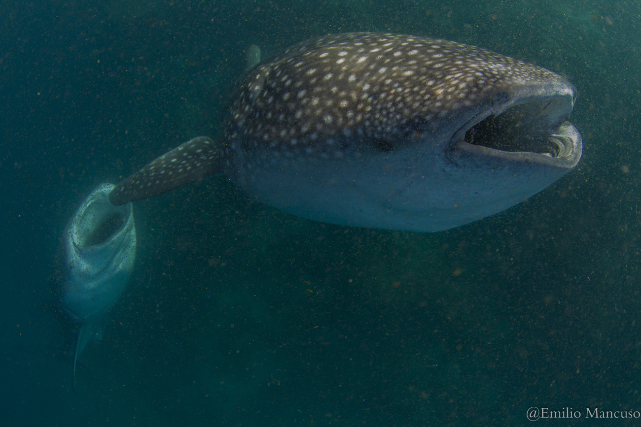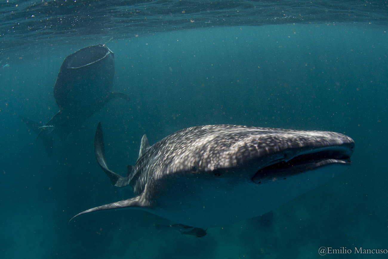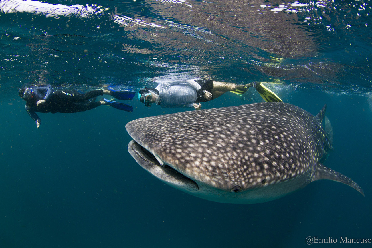 Vederlo nuotare elegante e sicuro, fa capire quanto l'evoluzione sia stata perfetta e come non contino il suo peso e lunghezza, ma l'essere a proprio agio nell'elemento l’acqua dove ogni movimento è pura Poesia. Lo guardiamo nuotare mentre annaspiamo un po’, anzi, come disperati, perché le nostre gambe sono nulla rispetto alla sua enorme pinna caudale. Nonostante la fatica inizi a farsi sentire, ringrazi quella curiosità e voglia di scoprire che ti ha portato fino a qui, fino a quell'istante in cui lui ti concede una tregua, rallenta, si fa guardare, forse ti guarda, e ti regala un momento a contatto ravvicinato, lui che è il re dei mari: lo squalo balena.