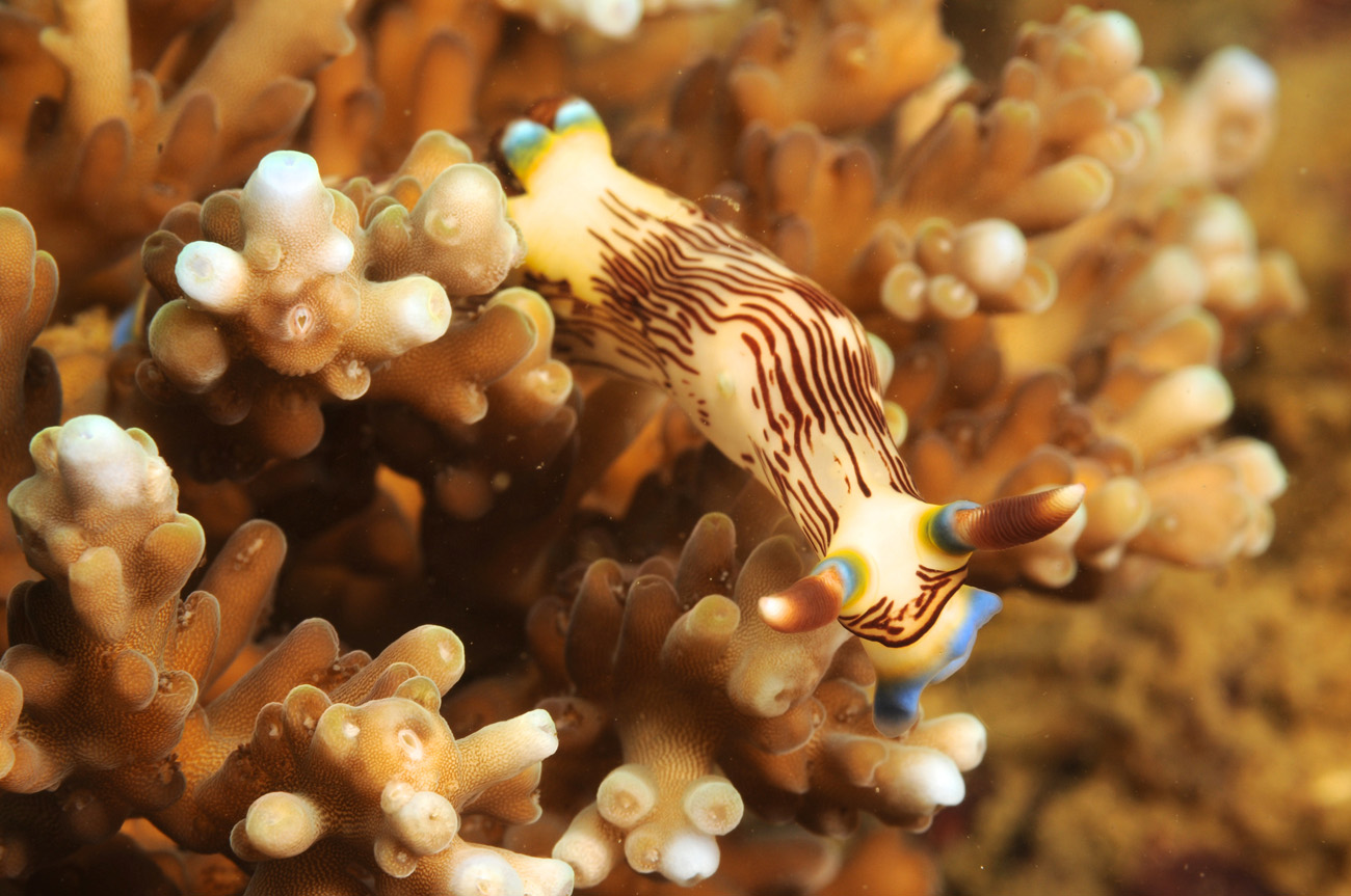 Ci troviamo in un’area universalmente riconosciuta per il più alto tasso di biodiversità, in cui l’antichità e la stabilità hanno permesso ai processi biologici che portano alla formazione di nuove specie, di procedere lenti e costanti per migliaia di anni, portando ai nostri occhi, comunità biologiche che per ricchezza, diversità e particolarità sono molto distanti dagli scenari a noi più familiari. Vuoi per la loro bellezza, vuoi per la diversità di specie presenti, di sicuro c’è che i nudibranchi sono stati tra i protagonisti indiscussi delle nostre immersioni, capaci di attirare così tanto l’attenzione dei nostri corsisti, che troppo spesso, affannati nelle loro ricerche, non notavano specie di pesci altrettanto affascinanti e biologicamente peculiari.
