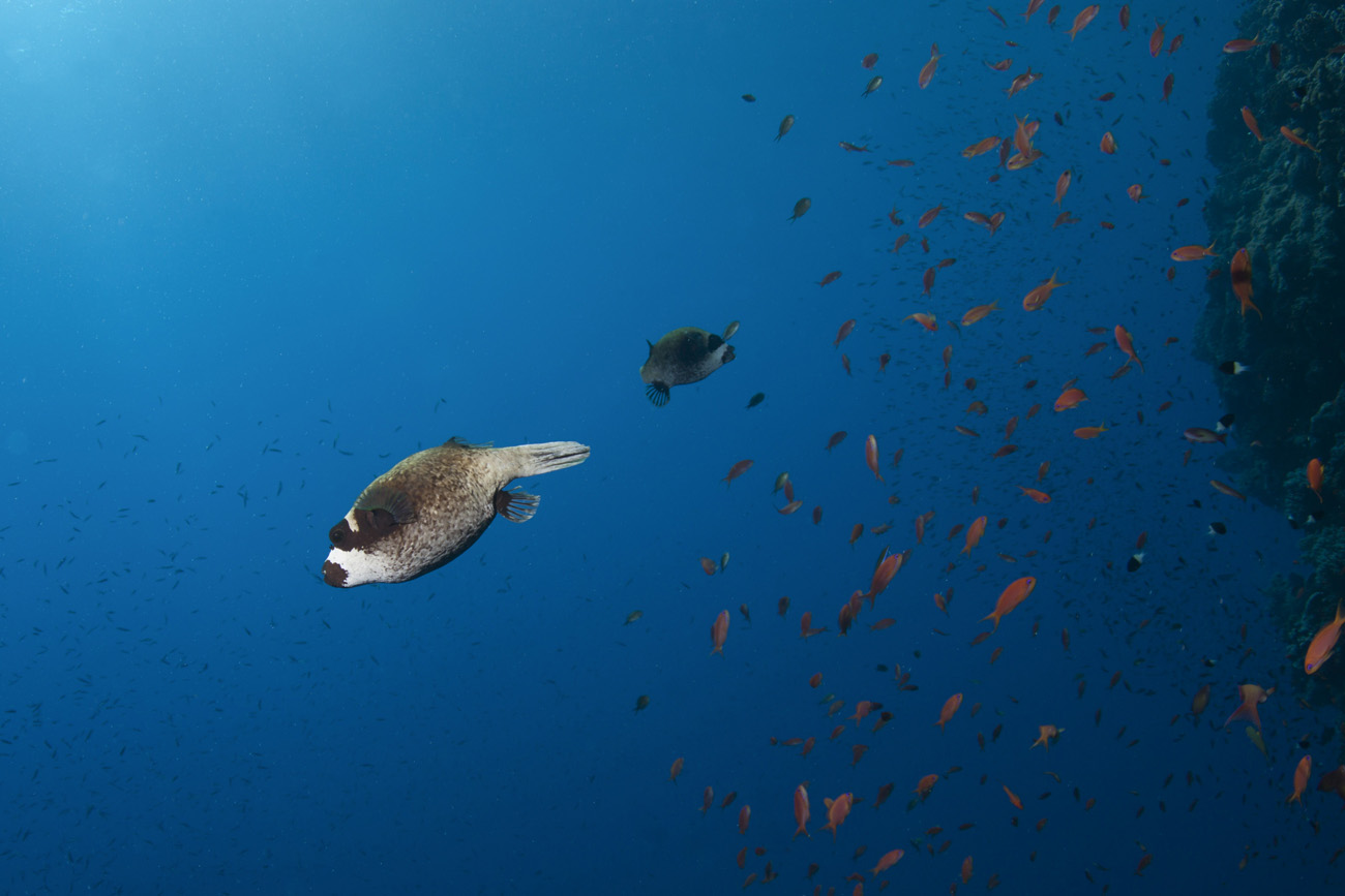 Tante sono le curiosità legate a questi strani pesci, la più conosciuta è la capacità di ingoiare acqua fino a dilatare lo stomaco per scopi difensivi, che ha dato loro il nome di pesci palla. Meno conosciuta forse è la reale distribuzione di uno dei persci palla più famosi: il pesce palla mascherato Arothron diadematus, che vi sarà sembrato di incontrare in Mar Rosso come alle Maldive o in Indonesia, ma che invece è endemico del Mar Rosso. La specie estremamente simile per dimensioni, comportamento e a volte livrea che incontrerete fuori dal Mar Rosso è invece Arothron nigropunctatus.