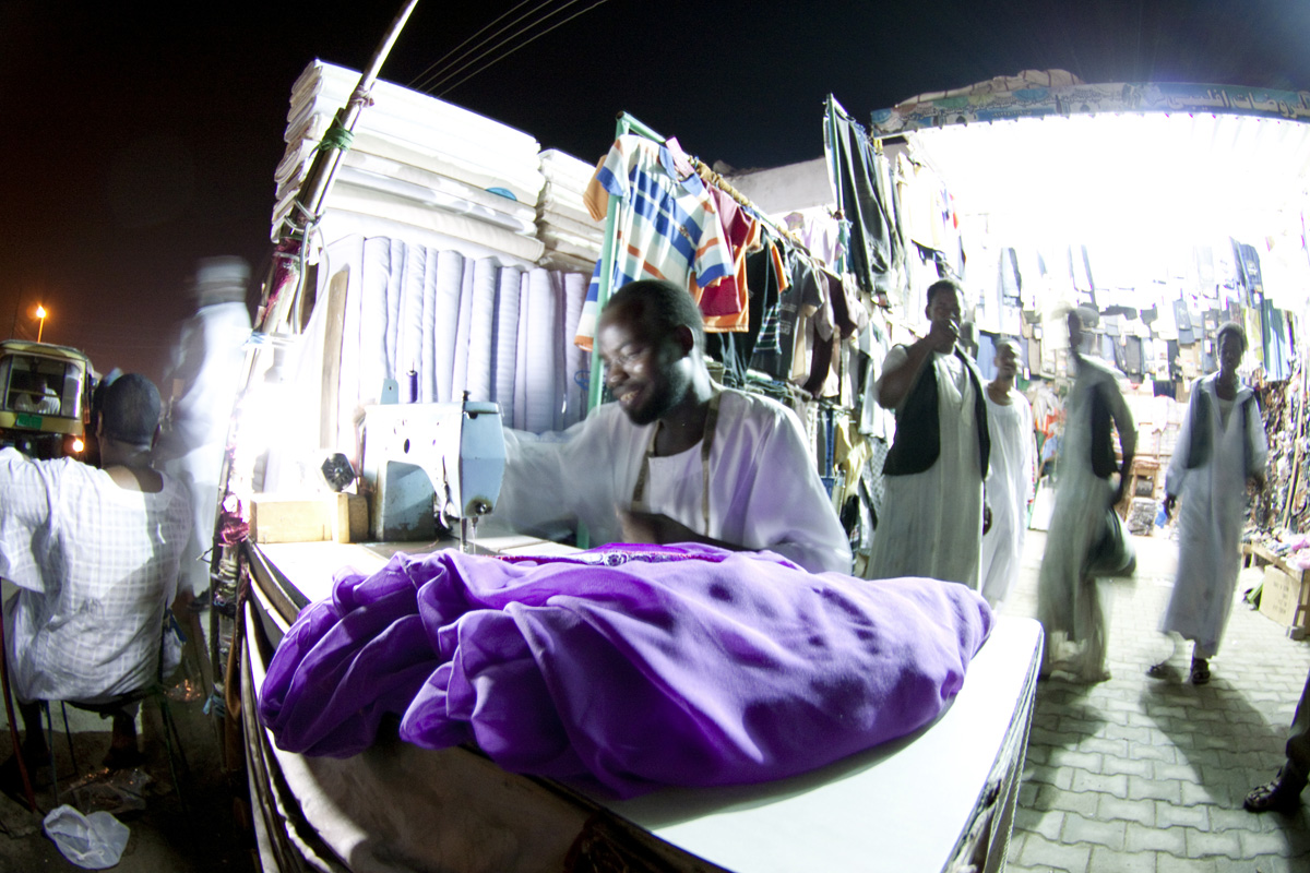 Un’altra zona del suq, quella dedicata alla carne e al pesce, è situata all’interno di un capannone in stile liberty: quarti di carne macellata, disposti su enormi tavoli in legno massiccio, attirano le donne splendidamente avvolte nei loro veli, che si destreggiano tra le bancarella alla ricerca della migliore qualità al minor prezzo. In periferia centinaia di cammelli vengono venduti all’asta dopo contrattazioni interminabili; bizzarri personaggi si aggirano intorno ai poveri animali, analizzandoli da cima a fondo prima di iniziare a discuterne il prezzo. Ampi gesti e urla assordanti accompagnano la trattativa, intervallata sempre più spesso da un buon bicchiere di tè, chay, o di caffè, gahwa, bevande essenziali per la sopravvivenza di un arabo. All’imbrunire il cielo si colora di rosso disegnando forme astratte; la città si accende con tutte le tonalità del giallo prima di scomparire inghiottita dalla notte. Quando anche l’ultimo raggio di luce è sparito, un rumore assordante prende il sopravvento: sono i piccoli generatori che permetteranno a pochi privilegiati di illuminare le proprie abitazioni. La corrente elettrica è un privilegio in una città che vive con poche certezze.