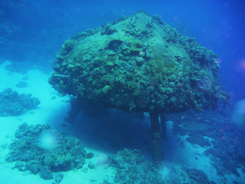 Abbiamo modo di accertarcelo subito quando ci immergiamo su Precontinente 2 il famoso villaggio sommerso di Cousteau installato poche decine di metri fuori dalla passe di Sha’ab Rumi in direzione sud. La famosa casa nel mare, questo esperimento straordinario realizzato dal comandante Jaques Cousteau nella quale gli oceanauti vi abitarono per un mese intero. Lo raggiungiamo con il gommone lasciando la barca ormeggiata all’interno della laguna.