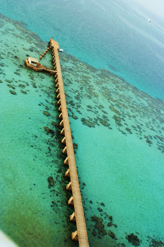 Passiamo in prossimità di agglomerati madreporici a forma di pinnacoli. Queste formazioni più o meno cilindriche che si ergono dal fondo per alcuni metri ospitano colonie di colorati anthias e cascate di alcionari purpurei, nelle zone più riparate si incontrano gruppi di pesci farfalla mascherati.