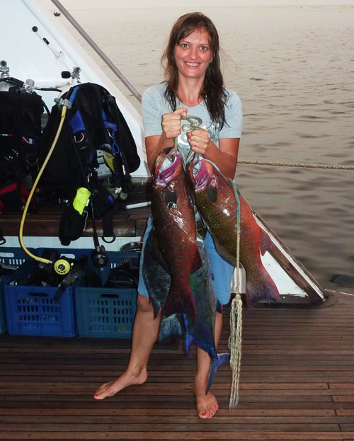 Naturalmente la seconda immersione la ripetiamo di nuovo al Pinnacolo. Sembra anche semplice perché è un immersione a cerchio, ci giriamo intorno e notiamo le bellezze della natura. Ritrovo i miei 2 martelli, probabilmente amano girarci intorno pure loro. Saliamo fino alla superficie del pinnacolo in pochi metri di profondità che ci accoglie con tutte le varietà di pesci pagliaccio, murene, anthias, farfalla, oloturie, pappagallo, balestra blu, pesci palla, pesci istrice, pesci pietra, è come se fosse un’altra immersione. Che colori!!! La terza immersione è comunque molto bella anche se non la posso paragonare al Pinnacolo visto che mi ha regalato l'inocntro con il martello. In barca mi prendono in giro, fanno tutti i segni per indicarmi la vista dello squalo martello dato che in acqua quando l’ho visto i miei occhi fuoriuscivano dalla maschera. Cavolo ero l’unica a non averlo ancora visto, non posso permettermi di ridere più del solito??!!