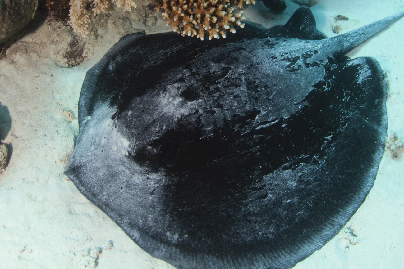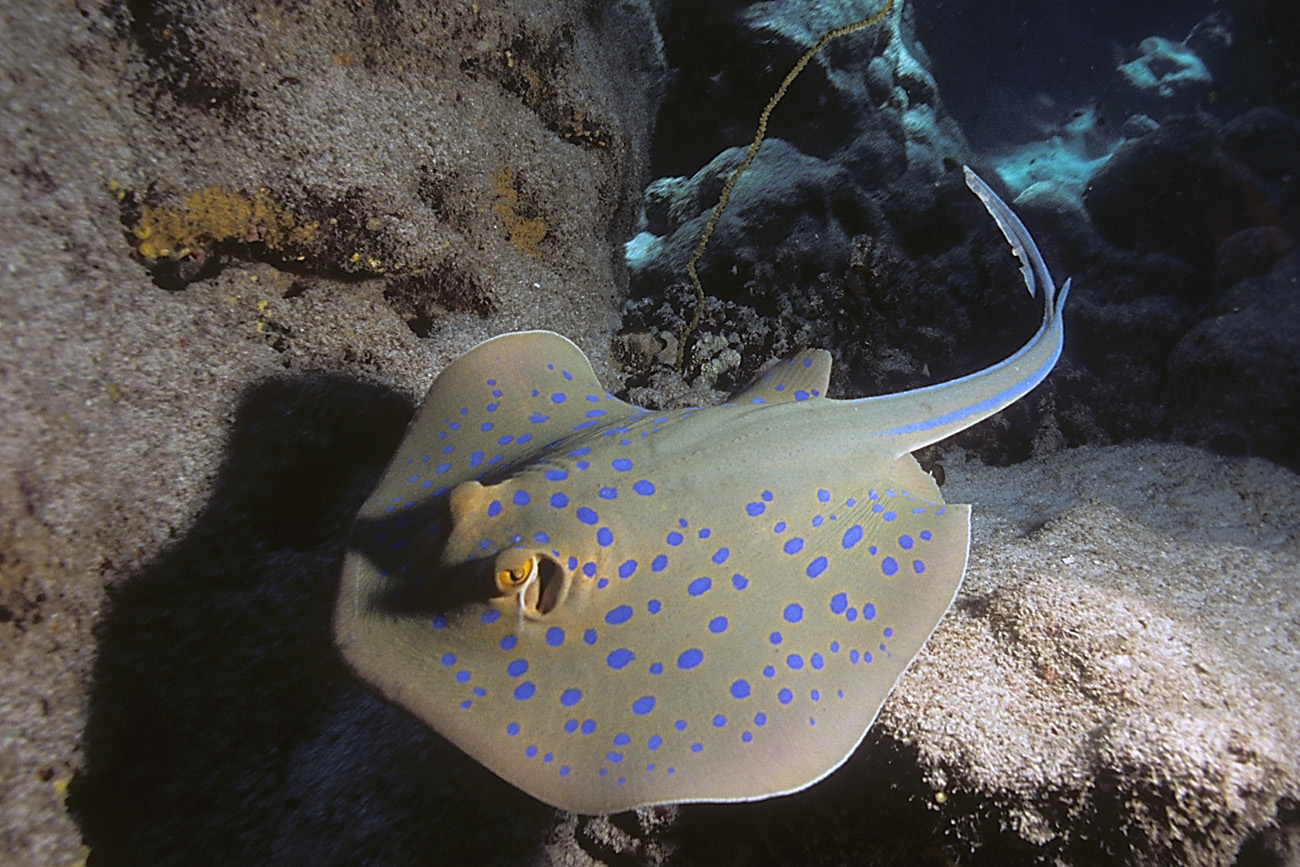 Poichè avete ormai capito quanto vario sia questo piccolo mondo, tra le curiosità voglio elencare alcune particolarità morfologiche che ci aiutano a capire "che razza di razza" stiamo osservando: Per riconoscere un trigone ci tocca osservare attentamente le pinne pelviche: se ogni pinna pelvica è divisa in due lobi (e molto spesso la testa non è inclusa nel disco delle pettorali) allora è un trigone. Razze a macchie blu se invece ogni pinna pelvica è composta tendenzialmente da un solo lobo allora è un dasiatite (testa inclusa nel disco delle pettorali), o un myliobatide (testa parzialmente distinta dal disco pettorale come l'Aquila di Mare). Certo di non aver reso la vita di subacquei e snorkelisti nè più bella nè più semplice con questa contorta descrizione ma speranzoso che possa servire a scatenare osservazioni curiose e qualche domanda in più.