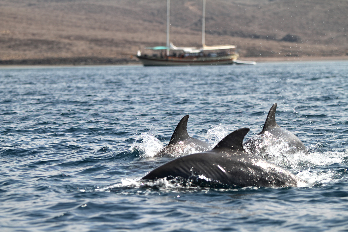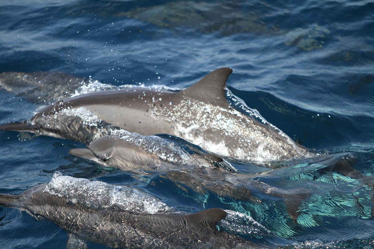 Il secondo importante risultato della spedizione riguarda i cetacei! Sono stati infatti avvistati 34 gruppi di delfini durante i 24 giorni passati in mare, circa 1 gruppo e mezzo al giorno. Tre sono le specie catalogate: il tursiope (probabilmente la specie Tursiops truncatus), la stenella dal lungo rostro (Stenella longirostris) e, sorpresona, la sousa, una specie di delfino costiero che presenta una sorta di “gobba” sulla schiena. In particolare gli avvistamenti di souse sono di notevole importanza, in quanto questi delfini sono considerati non comuni con la popolazione mondiale stimata attorno a poche decine di migliaia di esemplari.