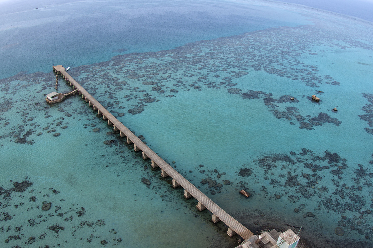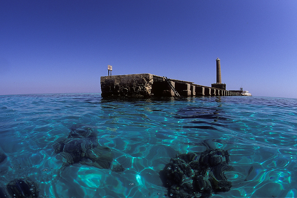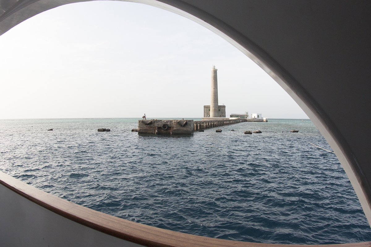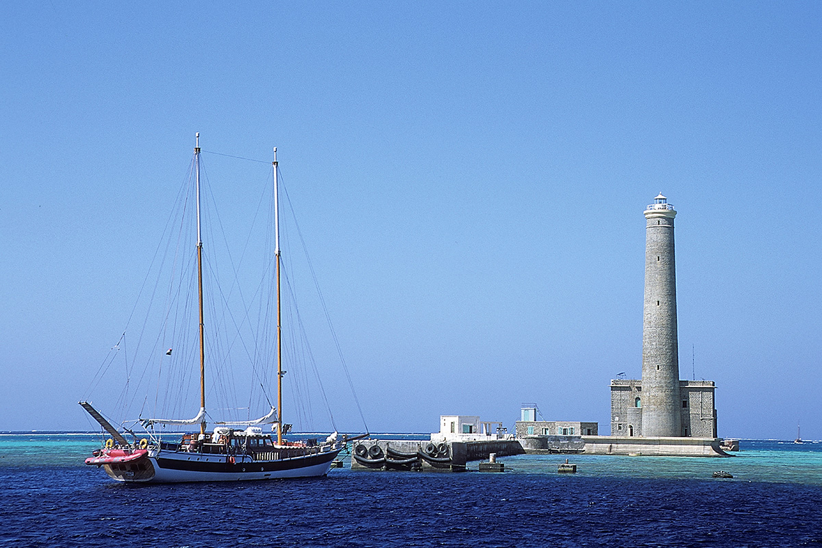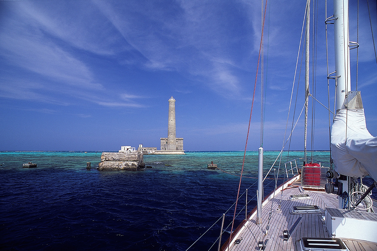 Da qualsiasi rotta si raggiunga il faro di Sanganeb l’emozione sarà grande, perché il colore dell’acqua che circonda il faro e la sua piattaforma è unico e incomparabile. Racchiuso all’interno di una doppia laguna, che si estende per tre miglia in direzione nord disegnando in mare aperto un vero e proprio porto naturale, l’atollo dispone di una passe segnalata da due beacon che si apre sul versante ovest e che consente l’entrata ai natanti. Il faro di Sanganeb è situato sulla direttrice che collega il canale di Suez con lo stretto di Bab al Mandab; posizionato 18 miglia a nordest di Port Sudan il faro è una indispensabile guida alle trafficate rotte di navigazione del Mar Rosso verso Port Sudan e il suo fascio luminoso può essere osservato a oltre venti miglia di distanza. Lo spettacolare atollo che racchiude il faro si sviluppa verso nord per una lunghezza di 3,5 miglia ed è costituito da una enorme laguna circondata da barriera corallina affiorante che è a sua volta divisa in due parti: la laguna interna e quella esterna; quest’ultima occupa la parte sud dell’atollo ed è separata dalla prima da una serie di teste di corallo poste proprio al centro. Il passaggio al suo interno è praticabile soltanto con imbarcazioni a basso pescaggio dato che il fondale in questo punto varia dai 2 ai 4 metri di profondità. La laguna interna di Sanganeb rappresenta un ottimo ridosso da tutti i venti e soprattutto un ottimo ancoraggio. Il mare all’interno è sempre calmo grazie alla barriera corallina che smorza il vento da nord. Dall’alto del faro tutte le cose assumono una dimensione surreale, ma Sanganeb è una sensazione veramente vicina al sogno. Dal terrazzo posto in cima al faro ci si rende conto dell’unicità di questo luogo: l’acqua ha il colore dello smeraldo e dello zaffiro, il nostro sguardo abbraccia l’intero panorama che si estende verso nord, disegnando in mare aperto un vero e proprio porto naturale. Il reef costituisce una barriera frangiflutti e la laguna interna è un mare protetto che accoglie naviganti, pescatori e branchi di delfini. Le luci del tramonto rendono questo luogo ancora più affascinante e spettacolare.