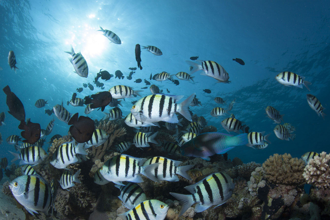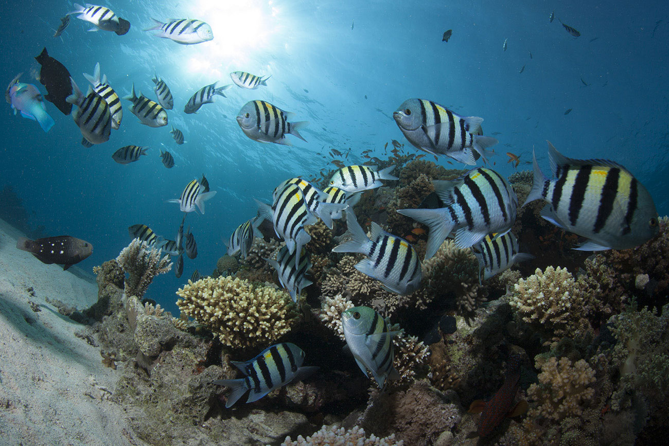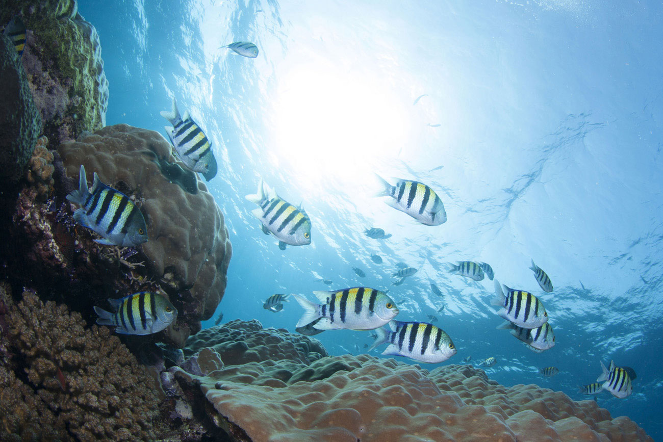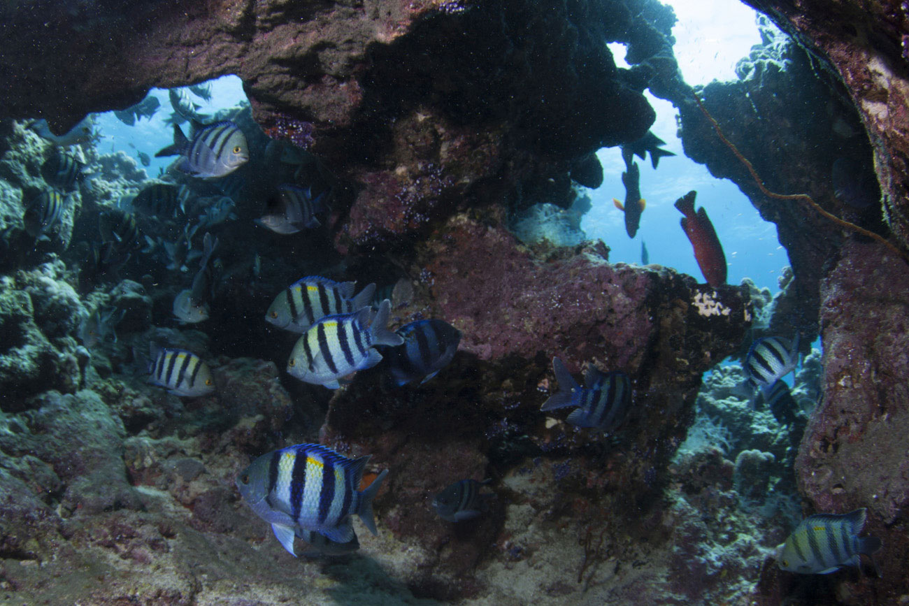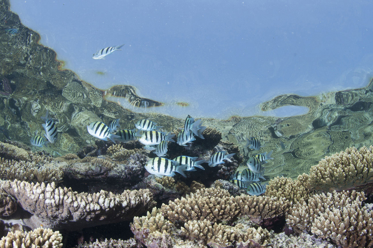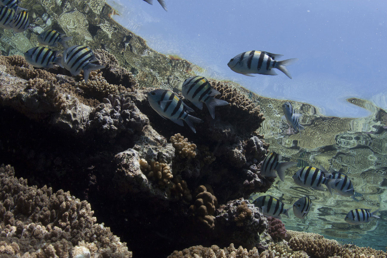 Le Damigelle o Sergente Maggiore sono pesci di dimensioni ridotte e per questo motivo difficilmente fotografabili singolarmente utilizzando un obiettivo grandangolare, a meno che non vengano inseriti all’interno di un contesto ambientale più ampio come per esempio la barriera corallina oppure, visto che vivono lungo lo strato superficiale, sfruttando i giochi d’acqua delle onde di superficie.