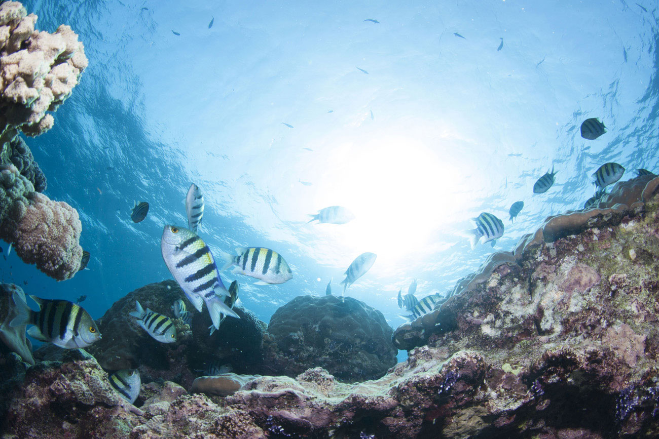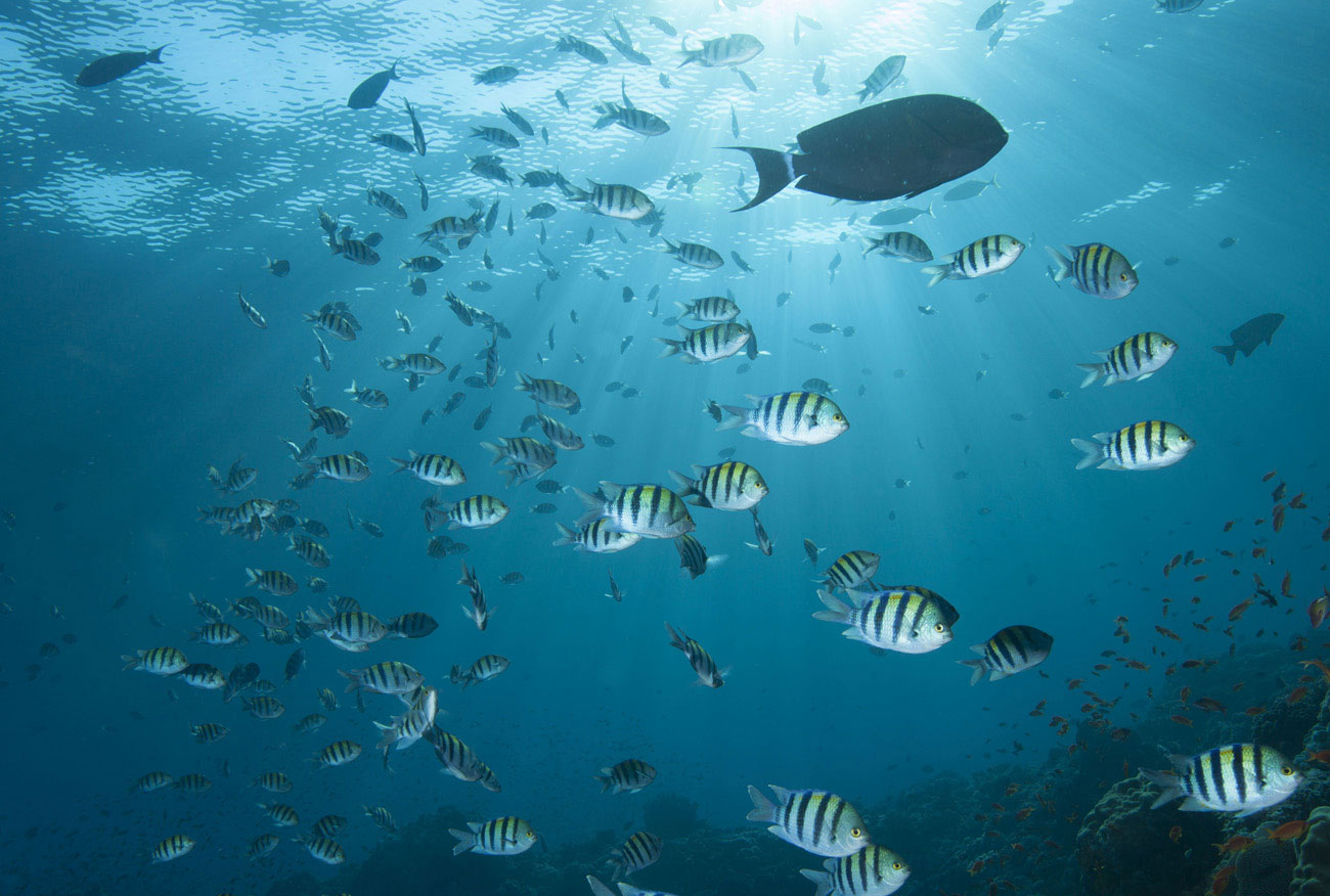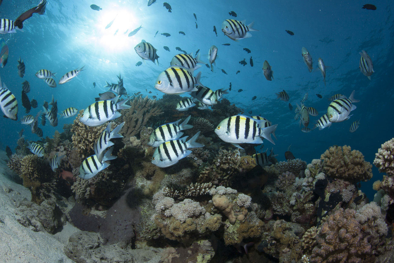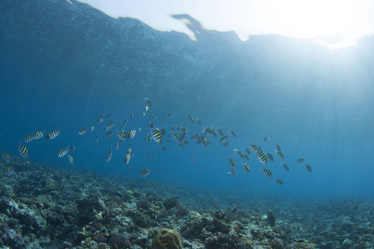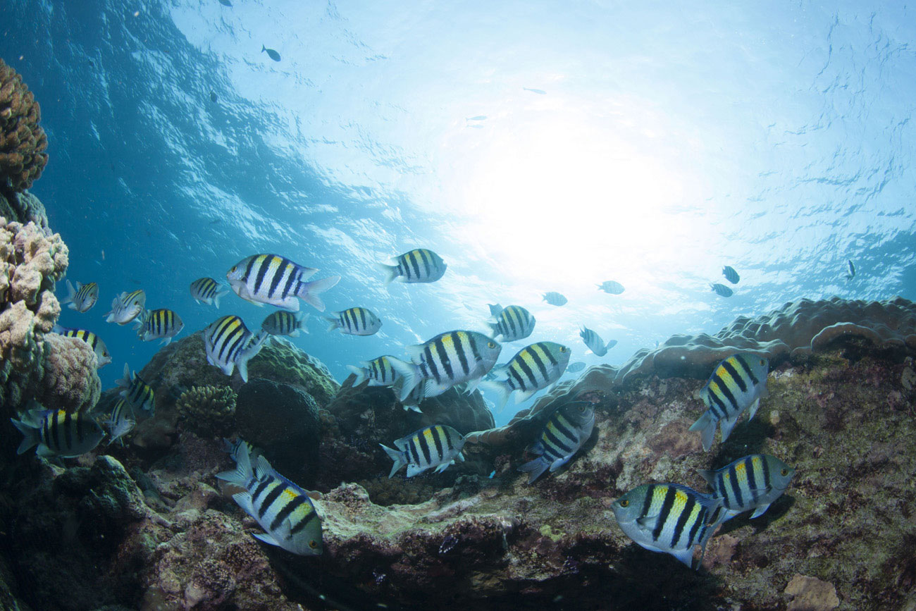 Le Damigelle o Sergente Maggiore sono pesci di dimensioni ridotte e per questo motivo difficilmente fotografabili singolarmente utilizzando un obiettivo grandangolare, a meno che non vengano inseriti all’interno di un contesto ambientale più ampio come per esempio la barriera corallina oppure, visto che vivono lungo lo strato superficiale, sfruttando i giochi d’acqua delle onde di superficie.