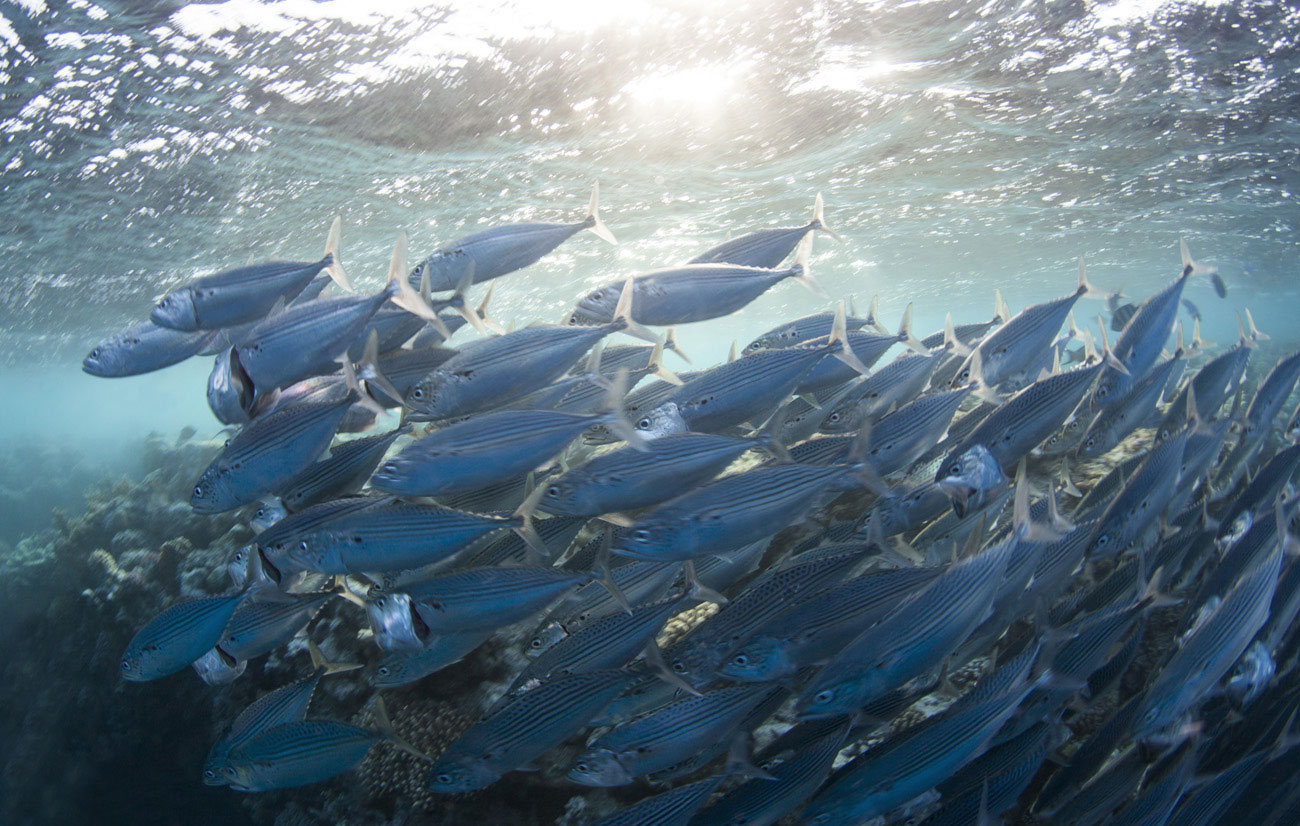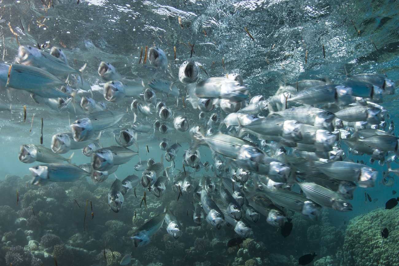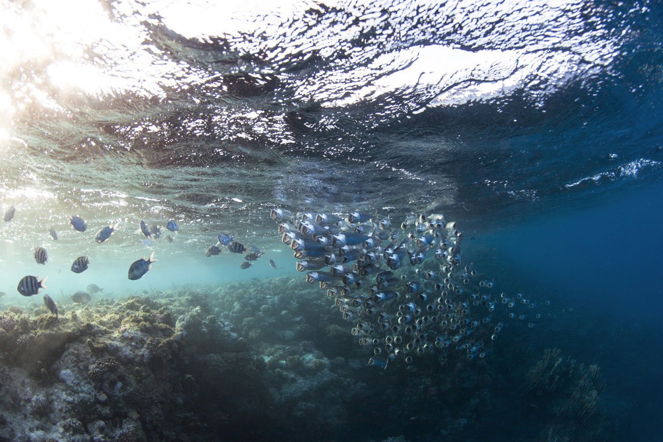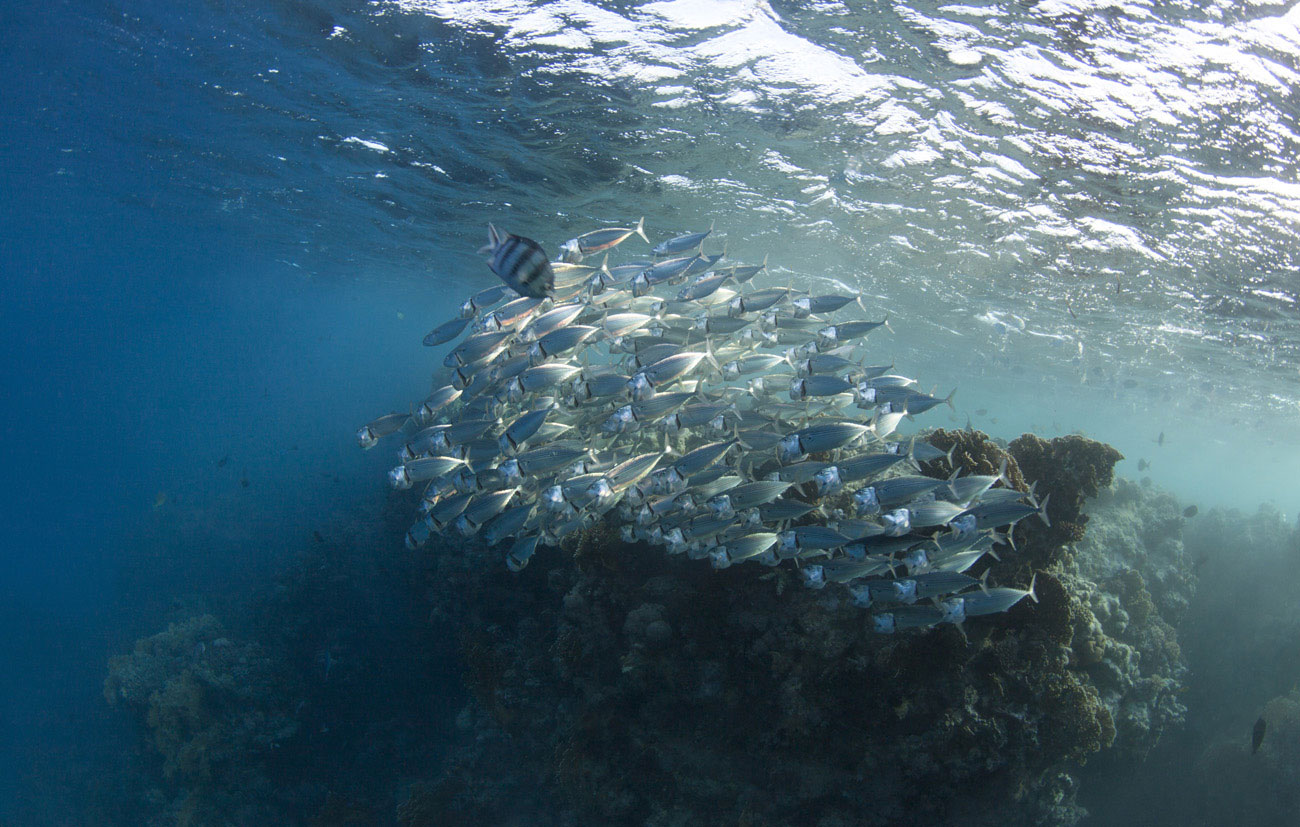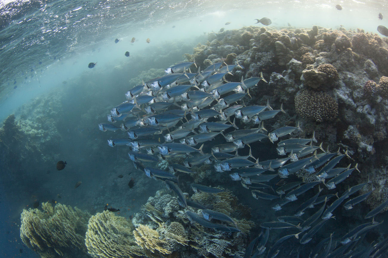 Considerando che la maggior parte delle volte li si incontra in pochi metri d'acqua, questo è un altro enorme vantaggio per la ripresa. L'unico inconveniente può essere dato dal fatto che il branco nuota in un ambiente nel quale trova alimenti e quindi spesso ricco di plancton e alghe; dobbiamo solo pensare che quelli che noi consideriamo elementi di disturbo sono invece elementi importanti da contestualizzare nel nostro scatto. Dovremo cercare sempre di trovare il miglior assetto per non doverci muovere troppo una volta avvicinati al soggetto. Considerata la loro livrea argentea e la bassa profondità, non saranno necessari grossi colpi di flash visto che utilizzeremo principalmente la luce esterna. Un leggero colpo di luce sarà più che sufficiente per bloccare il soggetto, per il resto cercate di sfruttare al massimo la luce esterna.