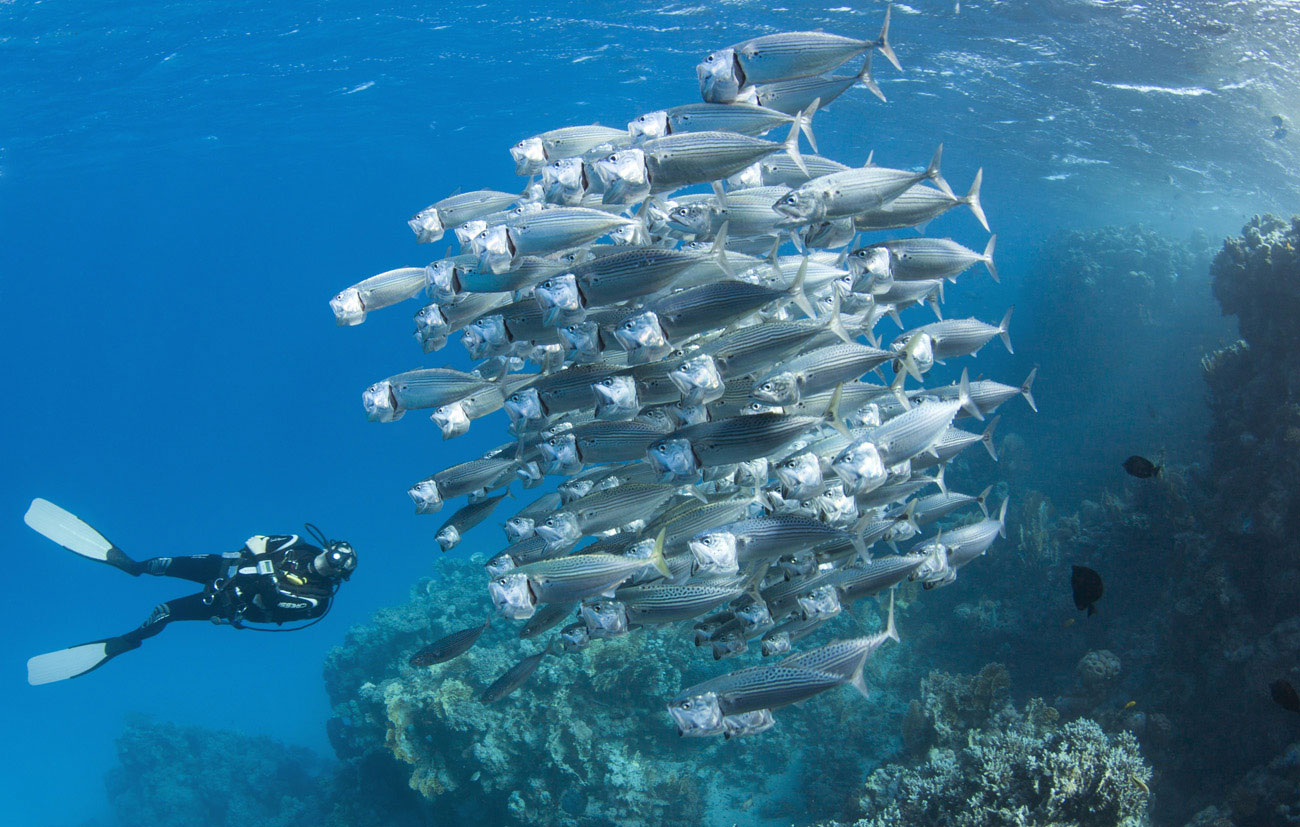 Saranno loro ad avvicinarsi, ad allontanarsi e magari ad avvolgervi completamente all'interno del grosso banco, ma essendo animali fortemente gregari ed abili nuotatori non pensate di poter decidere al posto loro. Nel momento in cui li individuate cercate di intuirne la direzione senza mai nuotargli incontro e senza mai tagliargli la strada, così facendo potreste passare delle ore in snorkeling ad osservarli. Da eleganti e idrodinamici di colpo spalancano la bocca e diventa buffi ingoiatori di plancton.