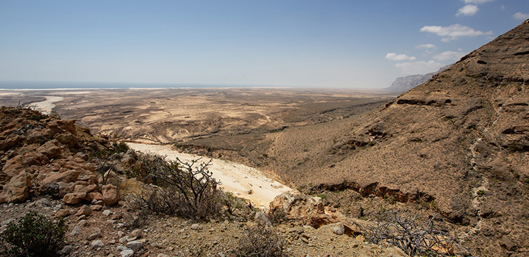 L'isola principale è costituita da una piccola piana costiera, altipiani calcarei di tipo carsico e le Haghier Mountains che raggiungono i 1.525 m.s.l.m. dalle cui vette si possono udire i rumori del mare che divora i calanchi sabbiosi e del vento che sbriciola le grotte. Magari si potessero sentire ancora i profumi perduti delle carovane orientali e dei commerci marinari dell'Arabia Felix.