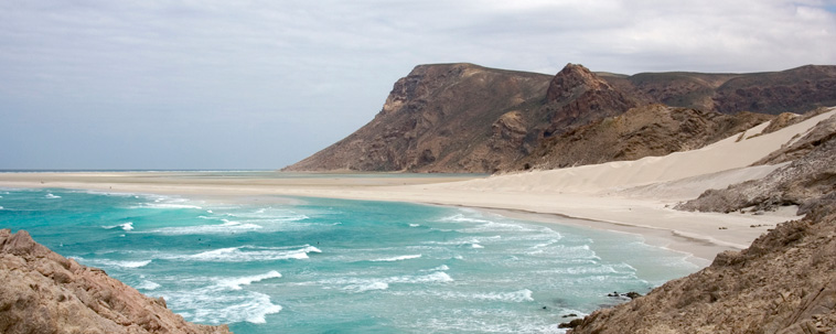 L'isola principale è costituita da una piccola piana costiera, altipiani calcarei di tipo carsico e le Haghier Mountains che raggiungono i 1.525 m.s.l.m. dalle cui vette si possono udire i rumori del mare che divora i calanchi sabbiosi e del vento che sbriciola le grotte. Magari si potessero sentire ancora i profumi perduti delle carovane orientali e dei commerci marinari dell'Arabia Felix.