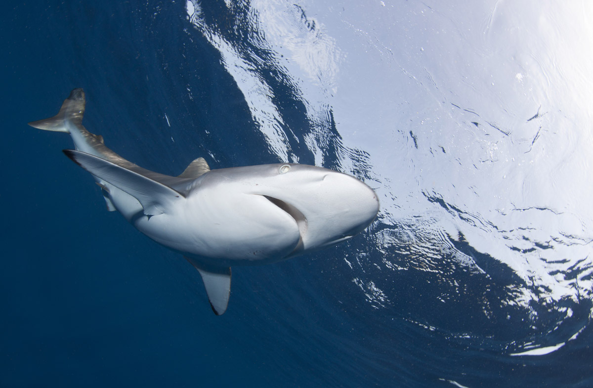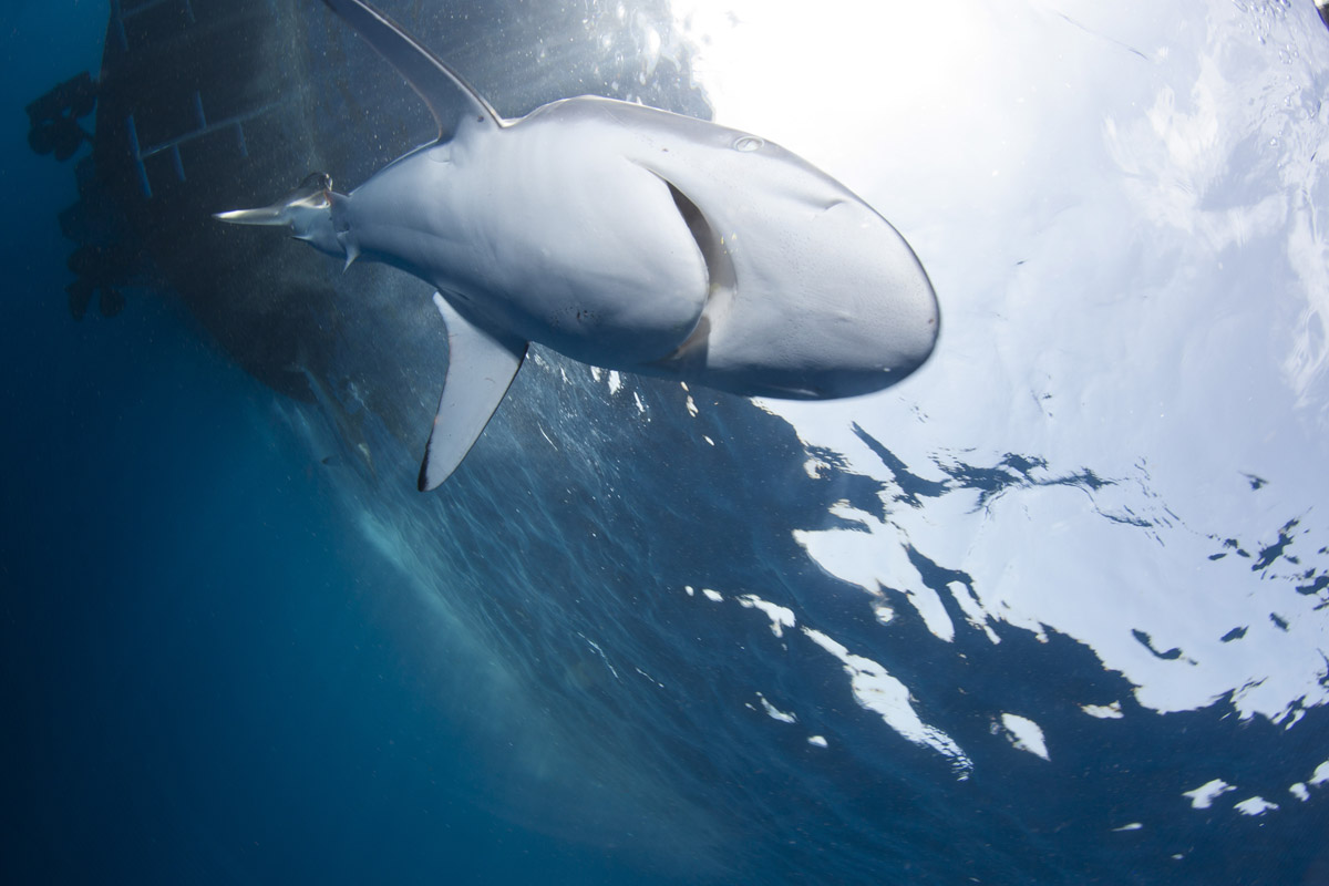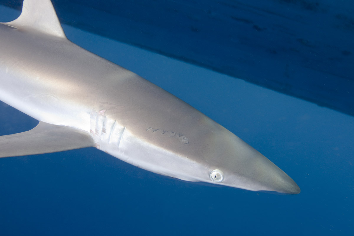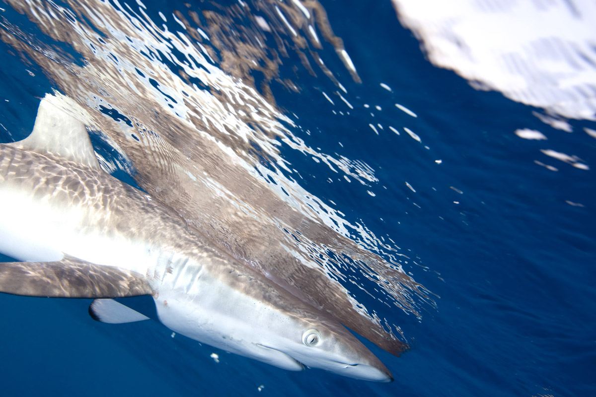 Sicuramente uno splendido esemplare da incontrare e da fotografare lo squalo seta grazie alla sua perfetta forma idrodinamica. Non facilissimo incontrarlo ma neanche impossibile. Esistono stagioni in cui è più facile imbattersi nello squalo seta, in particolare durante la primavera avanzata, periodo in cui aumenta la concentrazione di questi animali anche in acque poco profonde. Fotografare bene uno squalo seta non è impresa impossibile considerata la sua indole particolarmente curiosa soprattutto negli esemplari più giovani. Non è escluso trovarci a contatto diretto, con la possibilità di fotografarlo con un grandangolo. Come abbiamo già detto altre volte, il trucco per poter riprendere qualsiasi animale è quello di farci accettare come elemento non invasivo innanzitutto e poi attendere sempre un attimo prima di dedicarci allo scatto finale. Lo squalo seta comparirà davanti a voi una prima volta per poi sparire. Ricomparirà un altra volta e un altra volta ancora fino a quando avrà accettato la vostra presenza. A quel punto dovrete farvi trovare pronti e pensare solo a scattare. Cercate di allungarvi il più possibile verso il soggetto distendendo anche le braccia che sorreggono la macchina fotografica. In questo modo avrete guadagnato almeno un metro verso il soggetto. Avrete diverse possibilità di inquadratura a partire dal controluce fino alla ripresa in bassa profondità sfruttando i riflessi dell'acqua in superficie. Come sempre il flash dovrà essere solo un supporto luminoso utile a dare un leggero colpo di luce sul soggetto e nulla di più. Sarà la luce esterna ad illuminare il vostro pesce. Concentratevi anche sulla sua posizione che potrà assumere una bella forma dinamica, oppure statica se ripreso solo di profilo.