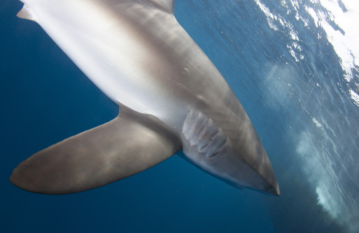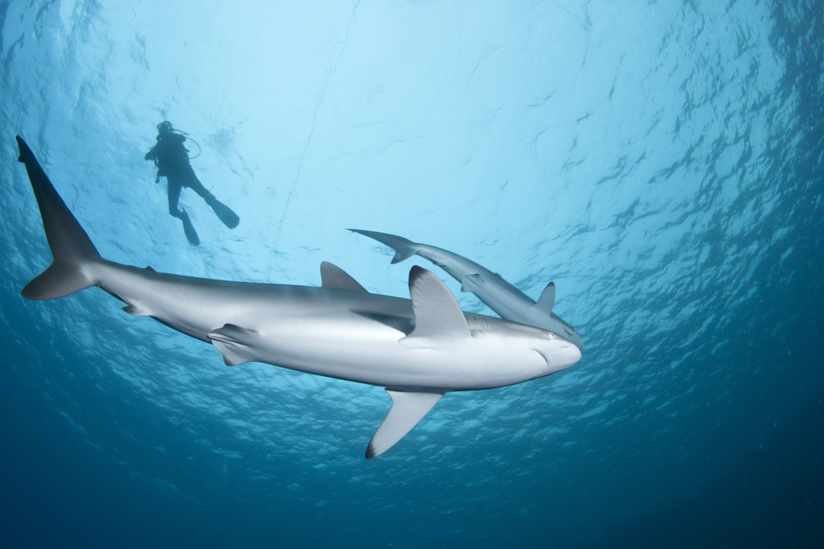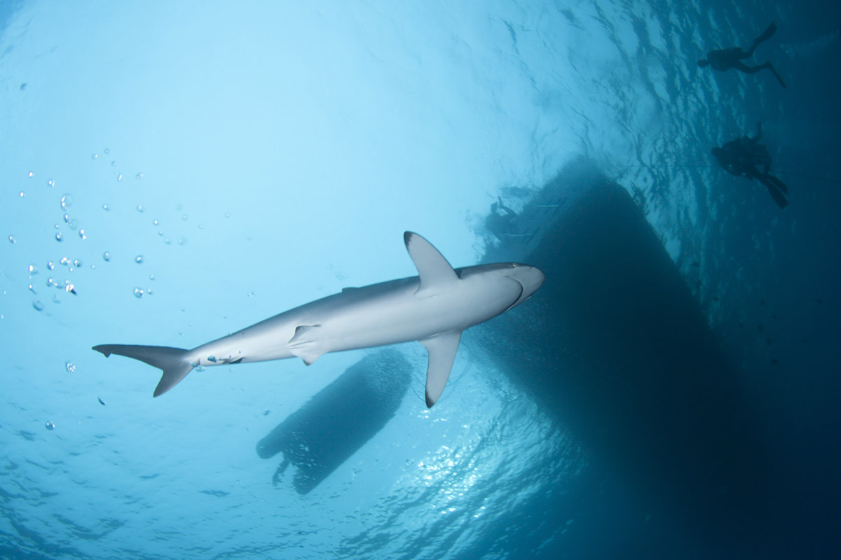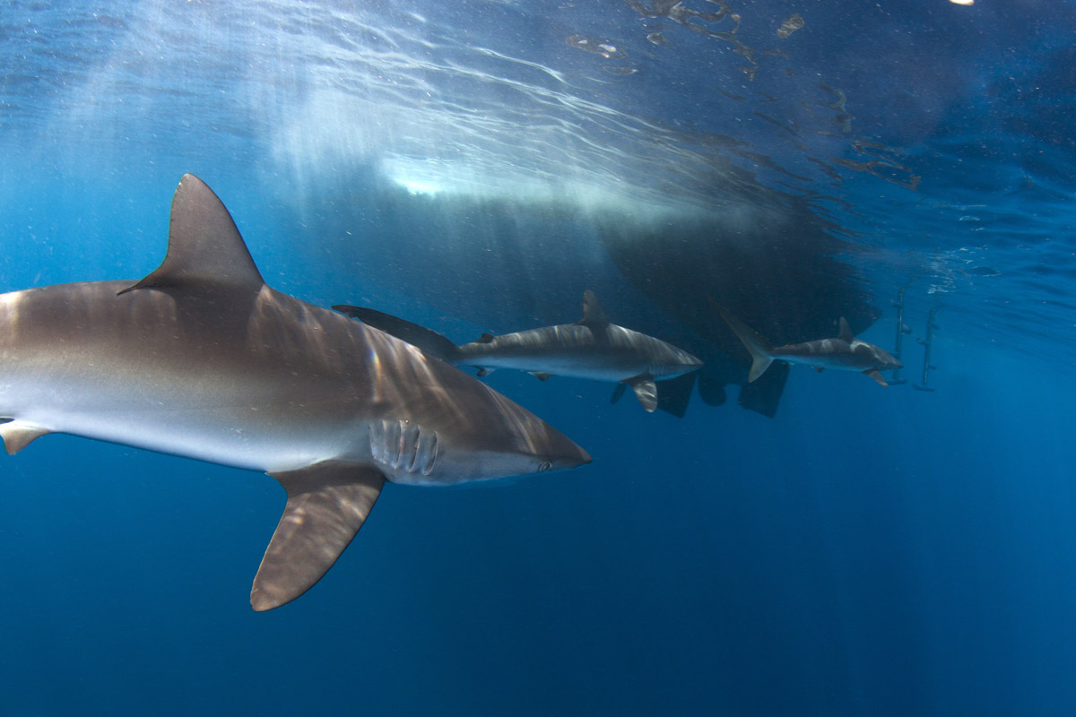 Sicuramente uno splendido esemplare da incontrare e da fotografare lo squalo seta grazie alla sua perfetta forma idrodinamica. Non facilissimo incontrarlo ma neanche impossibile. Esistono stagioni in cui è più facile imbattersi nello squalo seta, in particolare durante la primavera avanzata, periodo in cui aumenta la concentrazione di questi animali anche in acque poco profonde. Fotografare bene uno squalo seta non è impresa impossibile considerata la sua indole particolarmente curiosa soprattutto negli esemplari più giovani. Non è escluso trovarci a contatto diretto, con la possibilità di fotografarlo con un grandangolo. Come abbiamo già detto altre volte, il trucco per poter riprendere qualsiasi animale è quello di farci accettare come elemento non invasivo innanzitutto e poi attendere sempre un attimo prima di dedicarci allo scatto finale. Lo squalo seta comparirà davanti a voi una prima volta per poi sparire. Ricomparirà un altra volta e un altra volta ancora fino a quando avrà accettato la vostra presenza. A quel punto dovrete farvi trovare pronti e pensare solo a scattare. Cercate di allungarvi il più possibile verso il soggetto distendendo anche le braccia che sorreggono la macchina fotografica. In questo modo avrete guadagnato almeno un metro verso il soggetto. Avrete diverse possibilità di inquadratura a partire dal controluce fino alla ripresa in bassa profondità sfruttando i riflessi dell'acqua in superficie. Come sempre il flash dovrà essere solo un supporto luminoso utile a dare un leggero colpo di luce sul soggetto e nulla di più. Sarà la luce esterna ad illuminare il vostro pesce. Concentratevi anche sulla sua posizione che potrà assumere una bella forma dinamica, oppure statica se ripreso solo di profilo.