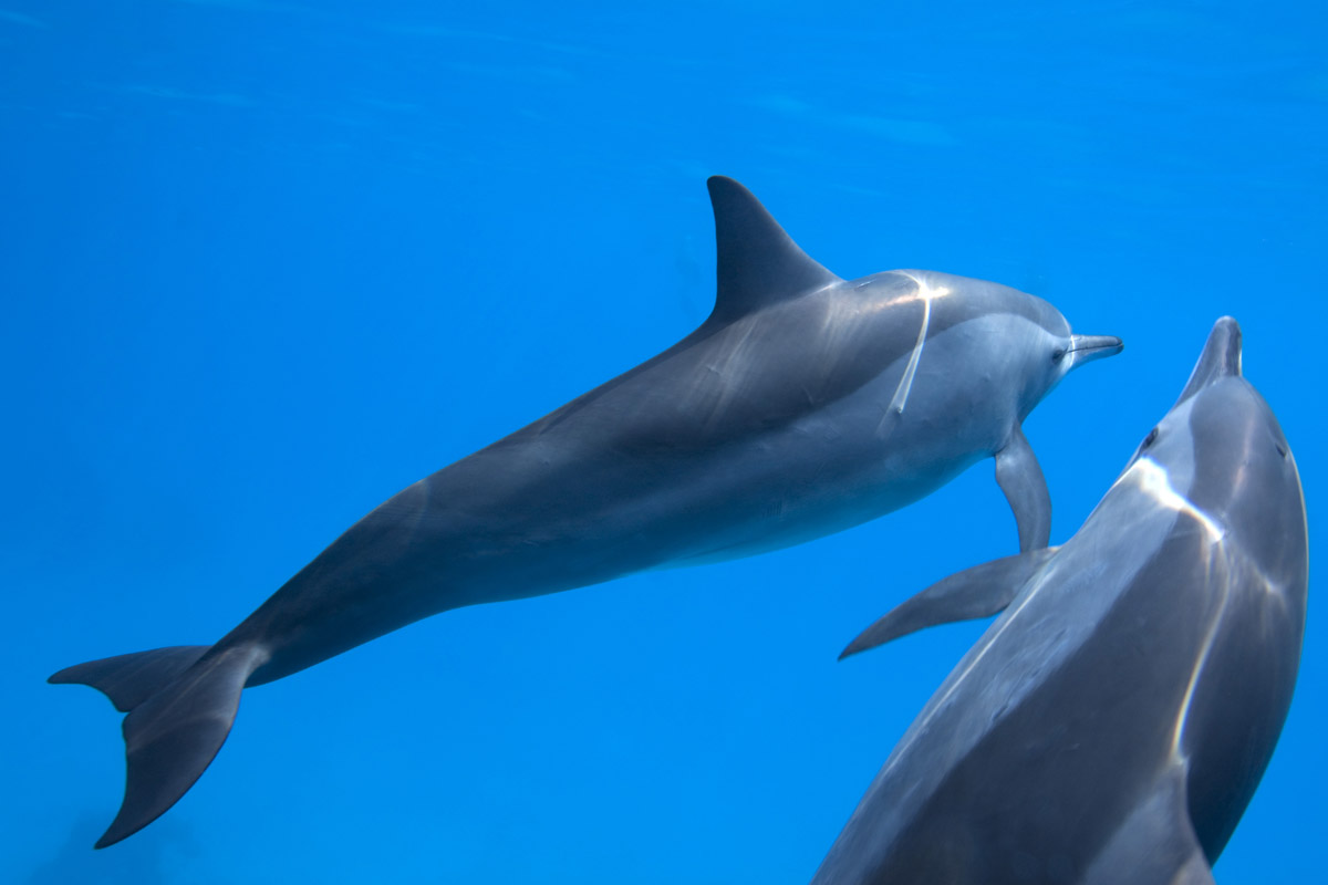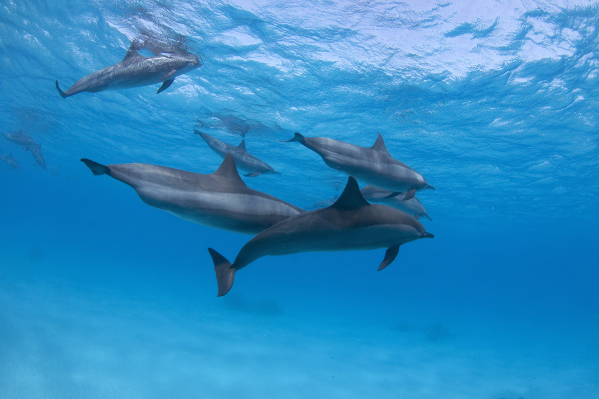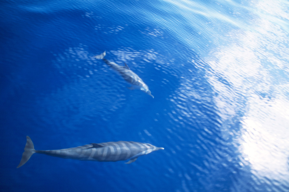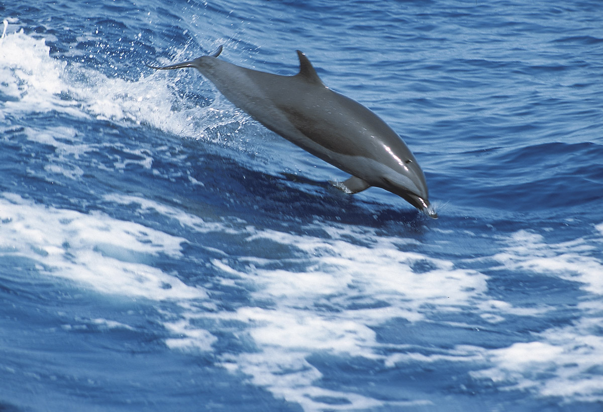 Riprendere un delfino è il sogno di ogni fotografo. Non è poi neanche così difficile intuirne il motivo dato che questo mammifero così come pochi altri mammiferi, costituiscono il contatto più stretto tra noi umani e la razza dei mammiferi marina. Certo è che non sarà molto semplice imbattersi in un delfino nel corso di una immersione con le bombole mentre lo sarà molto di più in apnea o nel corso di una navigazione. L'incontro con i delfini in immersione potrà accadere soltanto quando saranno loro a decidere di avvicinarsi al subacqueo perchè in uno stato particolare di curiosità se no difficilmente potrà avvenire un incontro casuale. Fatta questa premessa parliamo ora dell'incontro in apnea che sarà quello più semplice soprattutto in Mar Rosso dove, come abbiamo già detto, esistono siti nei quali intere famiglie di stenelle nuotano tranquille e indisturbate. Generalmente li si incontra all'interno delle lagune nelle quali vanno a proteggersi dopo una giornata di caccia in mare aperto. La tecnica di avvicinamento è molto semplice dato che la si potrà effettuare in gommone portandosi nella zona in cui nuota il branco. Scendete in acqua e attendete pazientemente il loro arrivo, il delfino è un animale molto curioso e sarà lui ad avvicinarsi. A quel punto dovrete nuotare seguendo i suoi movimenti ma senza affannarvi più del dovuto, certamente effettueranno diversi passaggi e avrete le vostre opportunità di fotografarli. Generalmente i delfini in laguna nuotano in fondali bassi su fondo di sabbia chiara e riflettente; una condizione perfetta per poterli riprendere anche senza il bisogno di usare il flash. Le tecniche di ripresa in queste condizioni possono essere diverse considerando le innumerevoli scelte di inquadratura: fotografarli in superficie oppure effettuare delle apnee in modo da riprenderli mentre sono in immersione o in controluce oppure ancora dall'alto verso il basso mentre nuotano rasenti al fondo. In tutti questi casi consigliamo sempre di usare un medio grandangolo se non addirittura un grandangolo spinto dato che potrete avvicinarvi abbastanza da giustificare l'uso di un bell'obiettivo grandangolare. Tenete presente che la livrea della stenella è grigia, sarà quindi necessario fotografarlo sfruttando al meglio la luce esterna che dovrà illuminare l'animale dalla parte in cui lo state riprendendo. Un altro consiglio da non dimenticare è quello di usare un tempo di sincronizzazione uguale o maggiore alla lunghezza focale dell'obiettivo che state usando in modo da non rischiare di realizzare immagini mosse. Il delfino anche quando sembra muoversi lentamente starà sempre nuotando ad una velocità tale da dover bloccare il suo movimento.