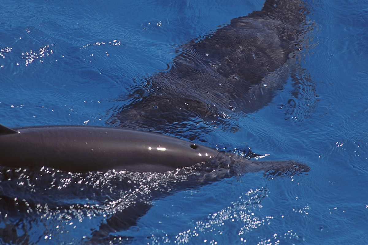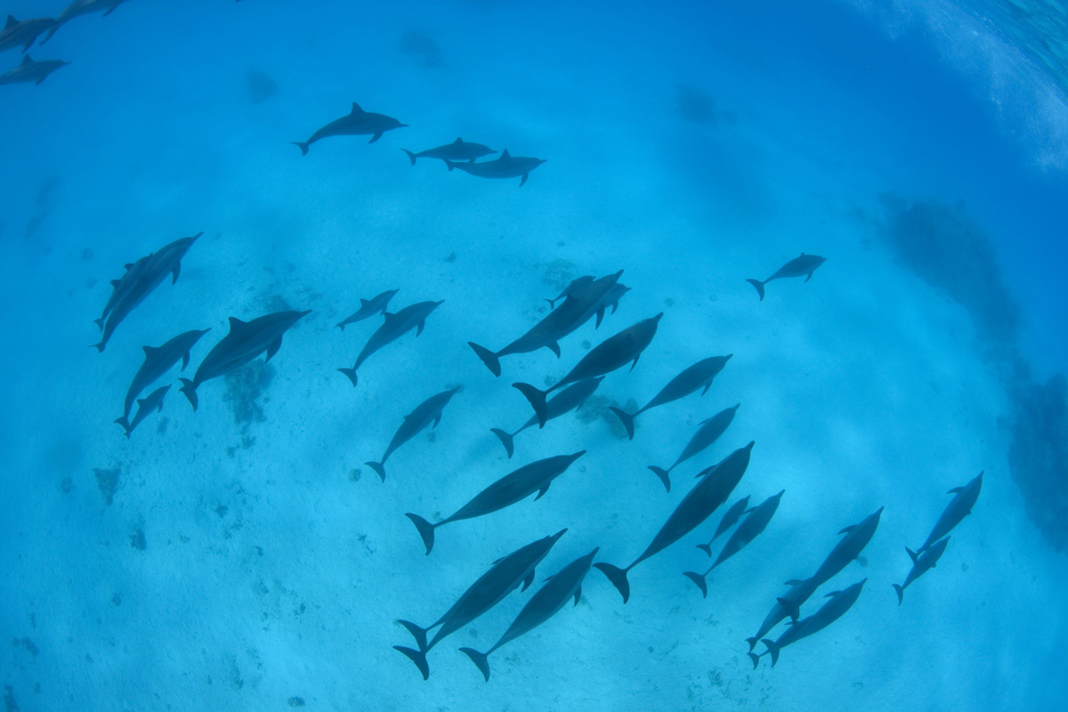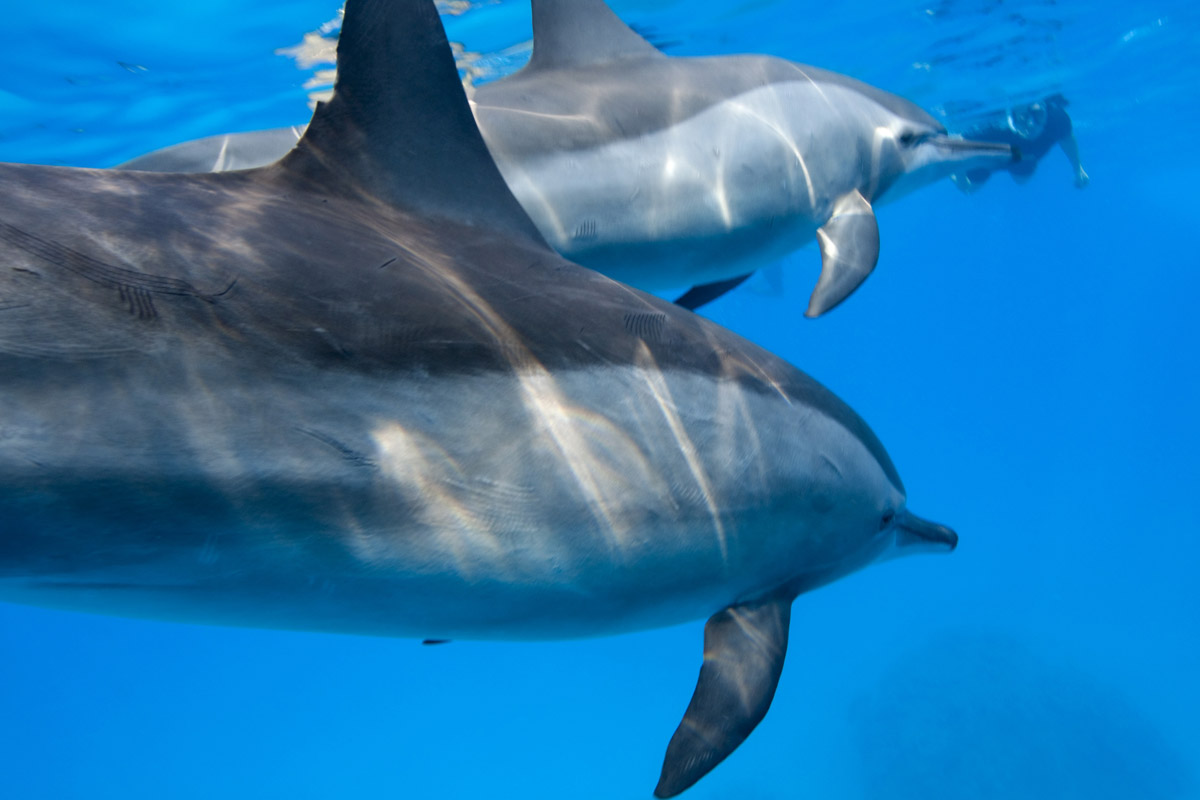 Non si tratta certo dell'unico cetaceo presente in Mar Rosso, ma grazie alla fama che lo accompagna, ai progetti di ricerca e alla storia che lega tantissimi amanti del Mar Rosso al famoso Dolphin reef di Sha'ab Samadai, le stenelle sono forse i cetacei più evocativi di questo mare. Stenella longirostris è un piccolo cetaceo dal corpo snello e slanciato appartenente al sott'ordine degli Odontoceti (cetacei provvisti di denti) di circa 1,5 – 2 metri di lunghezza che raramente raggiunge pesi superiori ai 70-80kg. Di colore tendenzialmente grigio con macchie più scure nella regione posteriore, sul dorso e in prosimità della gola ha invece il ventre bianco. Caratteristica cui deve il nome è il rostro (il muso dell'animale) lungo e sottile da qui longirostris Maschi e femmine raggiungono la maturità sessuale all’età di 9 anni, la gestazione dura 12 mesi, mentre le nascite sono concentrate nel periodo estivo. Il neonato pesa circa 10Kg. e misura quasi un metro alla nascita. I piccoli rimangono con gli adulti per circa 2-3 anni dopo lo svezzamento e dopo tale periodo si uniscono ai gruppi giovanili. L’intervallo tra un parto e l’altro varia da 1,5 a 3 anni e la longevità supera i 30 anni.