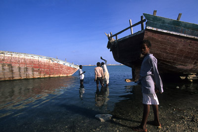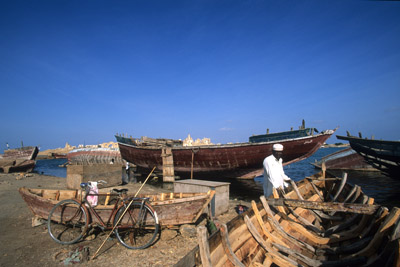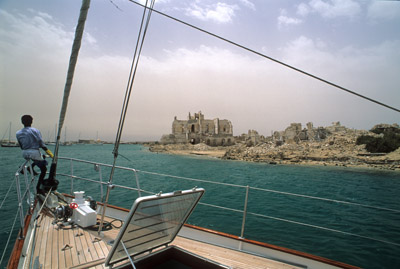 La costa del Sudan, è caratterizzata da una serie di insenature denominate in arabo marse, anse profonde che si incuneano nel deserto formando veri e propri porti naturali che, fin dai tempi antichi costituivano un rifugio per le flotte dei pescatori. La città vecchia sorge su una piccola isola posta all’interno di una profonda marsa collegata al mare da un canale lungo quasi due miglia e difficilmente individuabile; la baia è protetta da tutti i venti ed è pertanto un approdo molto sicuro per tutte le imbarcazioni che avranno il privilegio di raggiungerla via mare. Scoprendo questo luogo dalle caratteristiche naturali così straordinarie, i mercanti ne colsero immediatamente la valenza strategica e seppero valorizzarla al massimo insediandovi una città portuale. I latini lo chiamavano “genius loci” vale a dire l’intelligenza del luogo ossia la capacità dell’uomo di sfruttare un territorio in base alla sua collocazione, in questo caso i mercanti individuarono il posto ideale per costruire una città e un porto. La sensazione che provano oggi i naviganti dopo avere percorso il lungo canale d’accesso è paragonabile a quella che si proverebbe arrivando dalla laguna e trovandosi di fronte ad una immaginaria Venezia inghiottita dal tempo e dagli eventi. Arrivando a Suakin via terra si incontra sulla propria strada al-Geif, ossia la “città dei poveri”, situata lungo la costa; è il luogo dove ancora oggi vivono gli abitanti di Suakin. Al-Geif è costituito da piccole abitazioni costruite con mattoni di fango essiccato, dentro le quali la vita continua a scorrere secondo ritmi antichi, lenti e monotoni. La città oggi è anche il punto di sosta delle carovane di beduini Rashadia che attraversano il paese per raggiungere i mercati dell’Eritrea dai quali preleveranno i cammelli che verranno poi rivenduti al mercato del Cairo. Il piccolo mercato colorato è quanto di più caratteristico offra il villaggio: sgargianti tessuti multicolori e oggetti di artigianato locale, in terracotta, possono essere acquistati sulle piccole bancarelle; con un po’ di fortuna, entrando in contatto coi più anziani, si possono ancora acquistare gioielli originali, come bracciali e collane, ultime testimonianze di una ricca tradizione e di un prospero passato. La Jazirah, che in arabo significa isola, su cui sorge l’antica città, può essere raggiunta percorrendo l’istmo artificiale che la collega a terra. Per entrare si varca la Gordon’s Gate, la porta fatta costruire dagli inglesi nel 1877, e solo dopo averla attraversata ci si rende conto dello stato di degradazione in cui si trova oggi Suakin. Poche mura ancora in piedi e la moschea, situata esattamente nel centro dell’abitato, sono le ultime testimonianze del suo passato. Delle abitazioni di mercanti turchi rimangono ancora visibili alcune parti delle case di Khorshid Effendi e Shennawy Bey, dove un tempo si discutevano i commerci e si ammucchiavano le merci di tutto il mondo conosciuto. Quello che per molto tempo fu considerato il più importante porto del Mar Rosso vive ora di piccoli traffici interni; poche feluche di pescatori e gli ultimi esemplari di sambuchi ancora in circolazione sono quanto rimane di un’antica fierezza marinara. L’attuale realtà di Suakin è quella descritta dallo studioso Eric Hansen, che già nel 1972 scriveva: “Alla caduta delle prime piogge, ho potuto constatare quotidianamente il collasso delle costruzioni. Tra pochi anni non ci sarà più niente” Da allora sono trascorsi quasi trent’anni e Suakin continua a sgretolarsi sotto i piedi di chi ha la fortuna arrivarci e passeggiare lungo le sue strade. La sola vera testimonianza indelebile dello splendore di Suakin rimangono i colori che tingono i suoi muri all’ora del tramonto: la città si accende d’oro e per un attimo si ha la sensazione che tutto il mondo ruoti ancora attorno alla Jazirah. Ma il suo cuore, purtroppo, ha smesso di battere ormai da molto tempo.