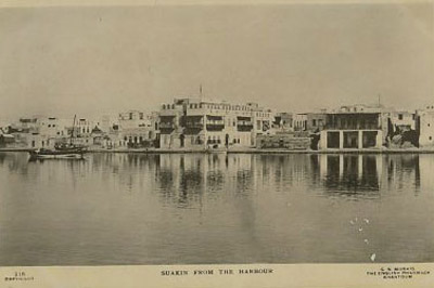 Nel 1869, fu aperto il Canale di Suez e il mar Rosso diventò la via più diretta e, naturalmente, più frequentata per raggiungere le Indie orientali dal vecchio continente; le navi trasportavano direttamente i prodotti europei della metallurgia e dell’industria tessile, nonché derrate alimentari, e caricavano al ritorno avorio, gomma arabica, caffè, piume di struzzo, sete, cotone e pellami. Il commercio più prospero restava, tuttavia, quello degli schiavi, di cui si rifornivano i mercati del Cairo, di Costantinopoli e dell’Arabia. Nel 1883 Osman Digna denominato “ il Mahdi” ossia colui che è ben guidato (da Dio)”, organizzò le proprie truppe con contingenti locali e, dopo un susseguirsi di vittorie e sconfitte, nel 1885 vinse l’esercito inglese comandato dal generale dal generale Gordon in una furiosa battaglia nei pressi di Khartoum.. Il tempo di rinforzare le proprie truppe con nuovi contingenti arruolati direttamente dalla popolazione locale, Osman Digna riprende i combattimenti e assedia Suakin. Nel 1885, Khartoum e il generale Gordon caddero di fronte ai ribelli. Di fronte alla minaccia di un nuovo attacco a Suakin da parte dei ribelli mahdisti il Colonnello Kitchener decise di rinforzare le difese della città facendo costruire attorno al villaggio di El Geif, cortina muraria in mattoni, presidiata da sei fortini, per il controllo dell’unica imponente porta da cui si poteva entrare in città. Queste opere murarie sono ancora visibili, anche se parzialmente in rovina, e ancora oggi rappresentano il punto d’ingresso alla città di Suakin. In questo modo lo stato maggiore Inglese, installato nella Muhafaza, cercò di riorganizzare una rotta commerciale sicura verso l’interno del paese, poco prima della caduta definitiva di Osman Digna avvenuta nel 1897. Suakin riprese così il suo ruolo stabile di grande città portuale e divenne governatorato della nuova provincia del Mar Rosso.