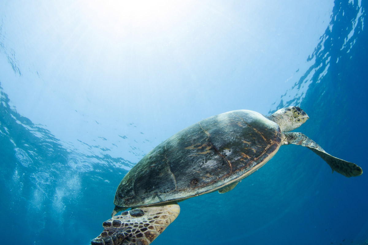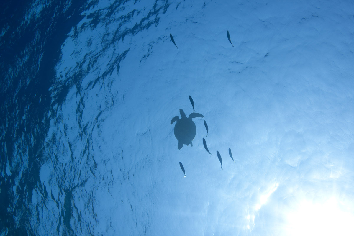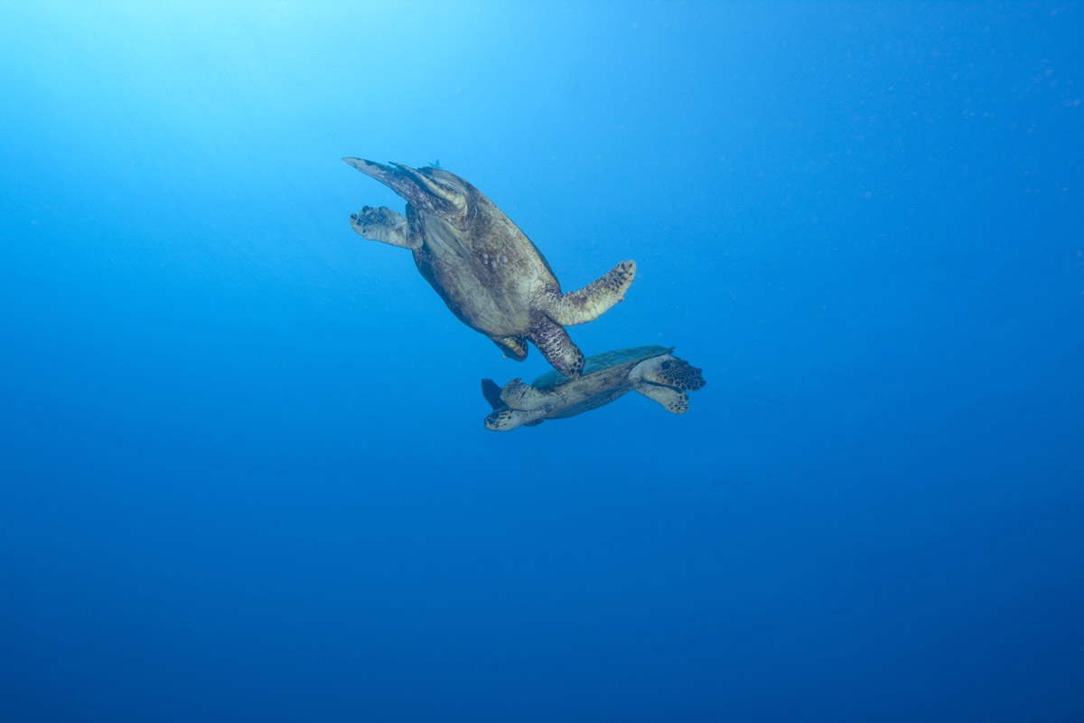 Sul reef, su fondi sabbiosi o in mare aperto, prima o poi le tartarughe devono risalire in superficie per respirare. Frutto del loro ritorno evolutivo al mare, le tartarughe hanno evoluto capacità da fenomenale apneista. Durante i momenti di "routine" alternano apnee di 4-5 minuti a permanenze in superficie che mediamente non durano più di 2 secondi. Questo si deve a sangue e polmoni in grado di scambiare velocemente ossigeno e anidride carbonica, facendo si che (in alcuni esemplari monitorati per mezzo di tag satellitari) arrivino anche a 500 apnee nel giro di 12 ore.