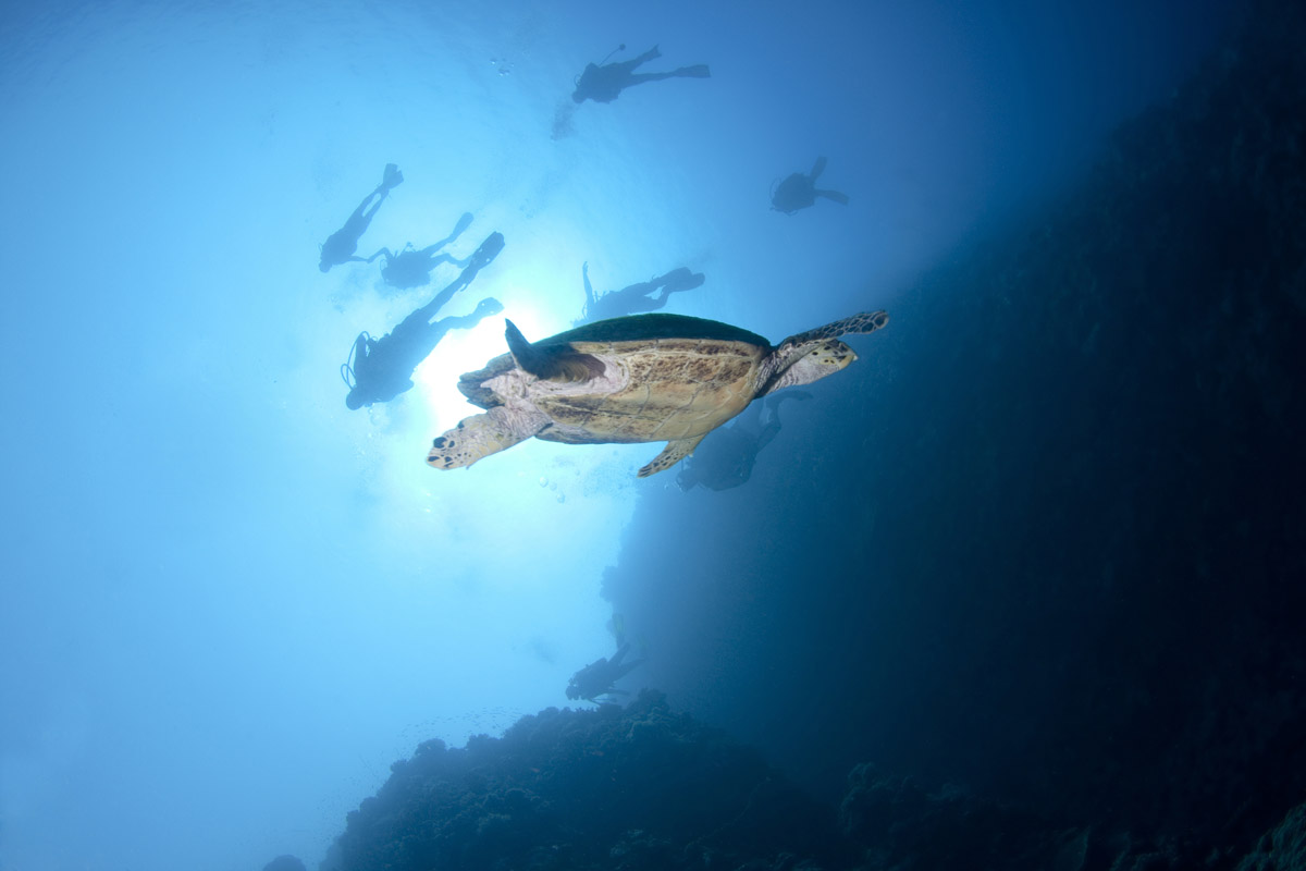 E' fondamentale ricordarsi che questi animali non devono essere mai infastiditi e soprattutto bloccati visto che devono respirare in superficie! Le scene romantiche e "demodè" del subacqueo attaccato al carapace devono essere solo lontani ricordi figli dell'ignoranza. Senza mai nuotargli contro, senza mai piombargli dall'alto, tutte azioni interpretate come tentativi di predazione, avviciniamoci ma restiamo a debita distanza.Così non le infastidiremo, potremo godere di uno spettacolo emozionantissimo e magari avere a che fare con la curiosità delle tartarughe che spesso si avvicinano spontaneamente per osservare "quella bestiola strana che fa le bolle".