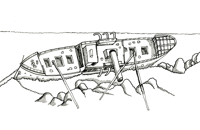 L’immersione sul relitto è particolarmente suggestiva, trattandosi di uno scafo totalmente integro, con la murata di destra posta poco sotto la superficie e le quattro gruette affioranti. Iniziando da poppa, si può ammirare il grosso timone e una delle due eliche a quattro pale che si staglia nel blu; la seconda, appoggiata sul fondo a -30 metri è semisepolta nel fango. Proseguendo si incontrano le due stive contenenti le bombe ancora immagazzinate, subito dopo il cassero centrale e il grande fumaiolo che giace sul fondale. A circa -35 metri sul fondo, si trovano due delle otto scialuppe di salvataggio abbandonate. Nuotando seguendo la fiancata della nave sulla destra, si raggiunge la stiva che conteneva oltre a vari materiali di costruzione, le preziose automobili Fiat 1100 passo lungo. Per raggiungerle si dovrà cercare l’imbocco della stiva che, considerando la posizione inclinata della nave, si troverò nella zona superiore rispetto all’accesso. Nella stiva successiva si trovano prevalentemente bottiglie di vino, sacchi di cemento e bombe di aereo. Si perlustra poi la quinta e ultima stiva, dove giacciono pneumatici per aereo e matasse di filo elettrico. Siamo in prossimità della bellissima e affilata prua con la catena dell’ancora calata dall’occhio di cubia di sinistra. Da questo punto la visita prosegue nuotando a ritroso lungo il ponte per raggiungere la passeggiata di prima classe, dalla quale si può accedere all’interno delle varie sale, tra cui il ristorante. Una florida vita marina ha adottato questo splendido relitto come rifugio, ridandogli in parte la vita perduta in un giorno di giugno del 1940. L’Umbria che costituisce un frammento della storia italiana, continua a vivere e a raccontare silenziosamente la sua affascinante avventura sotto la superficie del mare.