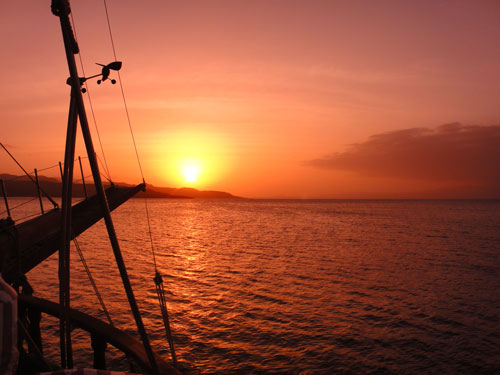 Il giorno successivo ci regala altri avvistamenti di balena, prevalentemente durante la mattinata. Ci vuole molta pazienza. Del resto, non è affatto facile stare dietro a questi bestioni che, a dispetto della loro mole e della loro apparente goffaggine, sono incredibilmente agili e sfuggenti, oltre che eleganti. Tra una discesa ed una risalita alla Navy Seals dai gommoni (altro che Legione Straniera, qui mi sembra di girare Soldato Jane!), la fatica è tanta e sono costretta spesso a riprendere fiato, abbandonando così gli inseguimenti, soprattutto quando i simpatici pescioni si inabissano. Alla testa di questi assalti c’è sempre Luciano che, armato della sua videocamera HD nuova di pacca, vuole fare concorrenza al National Geographic Channel, riuscendo non solo a star dietro ai balena, ma anche a superarli ed a posizionarsi sempre di fronte…a lui il titolo indiscusso di Aquaman della crociera (e tutta la mia ammirazione)! Quando non riusciamo a vederli, su suggerimento di Luigi, proviamo, con scarsi risultati, un metodo alternativo di avvistamento che ho battezzato whale shark surfing, che consiste nel farsi trainare attaccati ad una cima dal gommone mentre si scrutano le profondità marine alla ricerca dei bestioni (ma come ci è venuto in mente!).
