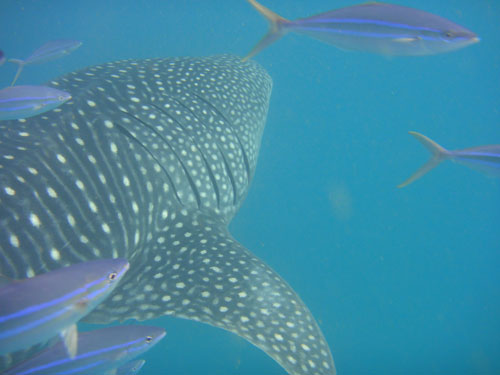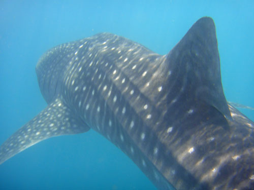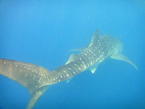 L'indomani è l'ultimo giorno e ci alziamo con l’intenzione di fare una scorpacciata di squali balena. Alcuni di noi (me compresa) rinunciano all’ultima immersione pur di immergersi più a lungo ed avvistare il maggior numero possibile di balena.