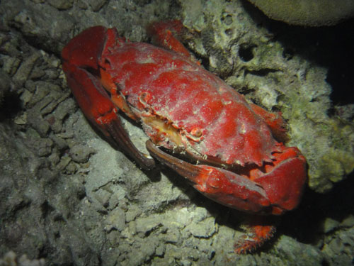 A corollario di una giornata che sembra infinita, siamo pronti ad affrontare anche la notturna ed una piccola invasione di granchi rossi (sembrano dei diavoli, ma nel Ghoubbet, mi sembra di capire, è tutto spettacolare!) che si ammassano minacciosi intorno alla barca ed ai gommoni con immensa gioia mia e di Davide, che si lancia in temerarie riprese con la mia videocamera subacquea.