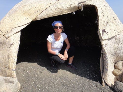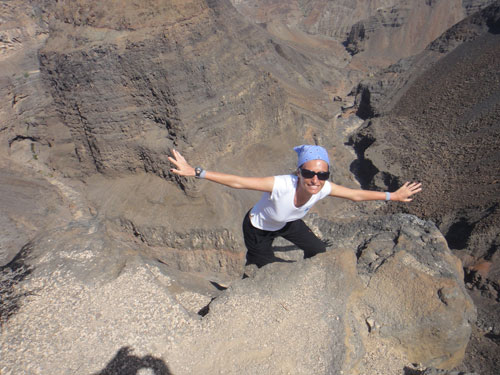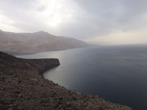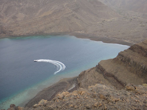 La salita è emozionante come rincorrere gli squali balena, si cammina e ci si arrampica in continuazione senza mai arrivare… Alla fine, il panorama del golfo al tramonto è da togliere il fiato: falesie spettacolari fanno da cornice ad un mare che i più coraggiosi tra noi vedono spuntare come un enorme occhio azzurro dagli altissimi strapiombi. Il Ghoubbet ha un fascino tormentato che ti prende e ti entra dentro in modo brusco come il suo paesaggio vulcanico.