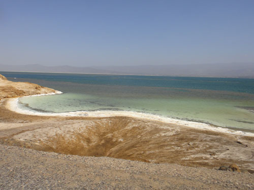 Il giorno seguente, la visita al Lac Assal non ci fa rimpiangere i balena. Durante il viaggio, incontriamo anche diversi animali: babbuini, asinelli selvatici, dromedari, antilopi e a marmotte (o qualcosa di molto simile ad esse). Tra una distesa desertica e l'altra, appaiono e scompaiono via via diversi villaggi. La maggior parte degli abitanti ha un rapporto conflittuale con la macchina fotografica: alcuni sorridono e salutano, altri scappano e, nel caso delle donne, si coprono con i lunghi veli colorati. Ci fermiamo prima alle sorgenti di acqua calda che si fanno strada in una serie di gole scavate nella roccia di arenaria. I colori, le sfumature e le forme di queste rocce ricordano vagamente i templi di Petra.