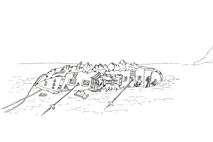 Lo scafo si trova oggi riverso sul fianco sinistro ed emerge dalla superficie con parte della fiancata destra e metà della chiglia. Le lamiere arrugginite emerse dell’Urania hanno oggi assunto un colore pastoso e caldo, tipico delle vecchie strutture in ferro, lo stesso che si trova sulle bitte e sugli anelli d’ormeggio delle vecchie strutture dei moli. Sulle lamiere emerse nidificano vari tipi di uccelli e vi si posano abitualmente aironi, martin pescatori sule, sterne e gabbiani. La maggior parte delle sue strutture hanno ormai ceduto in diversi punti tra cui la poppa che oggi è per buona parte appoggiata sul fondo in compagnia della battagliola. Il timone con tanto di femminelle e agugliotti è ancora al suo posto così come le possenti assi delle eliche che spuntano come moncherini ormai privi delle grandi eliche. Nella sala macchine sono presenti i grossi motori, le caldaie, enormi bielle e gli assi delle eliche impreziositi dai suggestivi giochi di luce che si creano in mezzo ai grovigli di acciaio. A proravia del castello di poppa si trova l’albero di mezzana appoggiato sul fondo e relativamente ben conservato fino alle crocette. Ai suoi piedi, in coperta, al posto di uno dei boccaporti delle stive sottostanti, vi è la piccola piscina di bordo impreziosita da minuscole piastrelle ricavata al posto del boccaporto per offrire maggiore confort ai passeggeri. In questa zona si trovano ancora alcuni bagni in uno dei quali troneggia una bella vasca in discreto stato di conservazione. Si arriva alla zona centrale, spoglia e ridotta a un ammasso di lamiere dove con pazienza si individuano alcuni resti delle strutture di bordo. Davanti al cassero la profondità aumenta passando dai -10 metri della poppa ai -20 metri, inevitabilmente anche il colore dell’acqua già torbida, tende sempre più al verde scuro. Altre stive e poi l’albero di trinchetta che si protende parallelo al fondo con la coffa tutta concrezionata. Siamo ormai a prua che si presenta integra e rivestita di gorgonie a frusta. Le catene delle ancore si estendono lungo il fondale per molti metri intrecciandosi tra di loro in alcuni punti. Quella di destra è la più interessante dato che termina con l’ancora piantata sul fondo ricoperta di crinoidi multicolori. La murata opposta del relitto è meno interessante essendo una successione di lamiere piatte. Biologicamente riserva però non poche sorprese, avendo ormai una fitta copertura di incrostazioni e concrezioni. Qui si trova una falla di circa due metri per due con le lamiere rivolte verso l’esterno, che potrebbero corrispondere a uno squarcio provocato con l’esplosivo par far affondare più velocemente la nave.