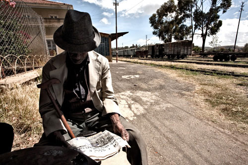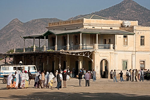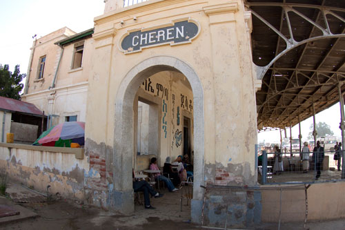 stazione di ASMARA Trascorriamo giornate intere alla stazione di Asmara. Ci sono giorni in cui siamo tra i primi ad entrarvi, vediamo nascere il sole che illumina i muri e le lunghe vetrate dell'edificio. Incontriamo anziani uomini passeggiare lungo le rotaie come se il tempo si fosse fermato agli anni in cui ogni giorno un treno partiva od arrivava ad Asmara. Ci sediamo all'interno del piccolo bar a bere un caffè espresso o un cappuccino e ascoltiamo i loro racconti, ci incontriamo nuovamente il pomeriggio mentre sorseggiamo insieme un bicchiere di araky e ascoltiamo le loro storie. Ci sono giorni in cui siamo anche gli ultimi ad uscire.